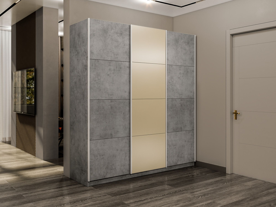 Шкаф-купе Прайм Широкий 3-х дверный ДСП/Стекла фисташка/Доводчики 240х57х230 (Бетон)