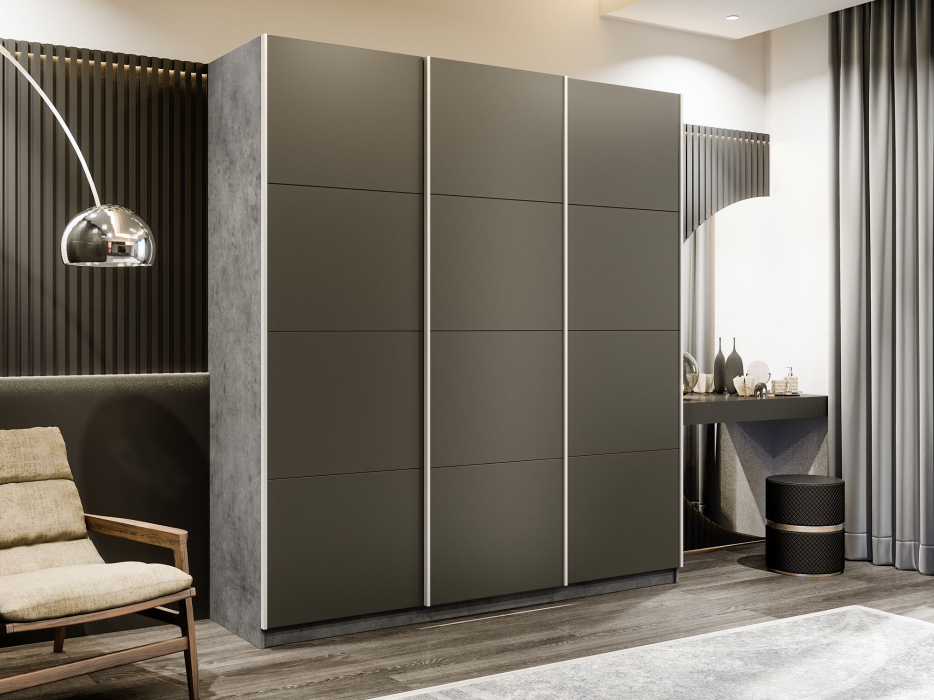 Шкаф-купе Прайм Широкий 3-х дверный Стекла хаки/Доводчики 240х57х230 (Бетон)