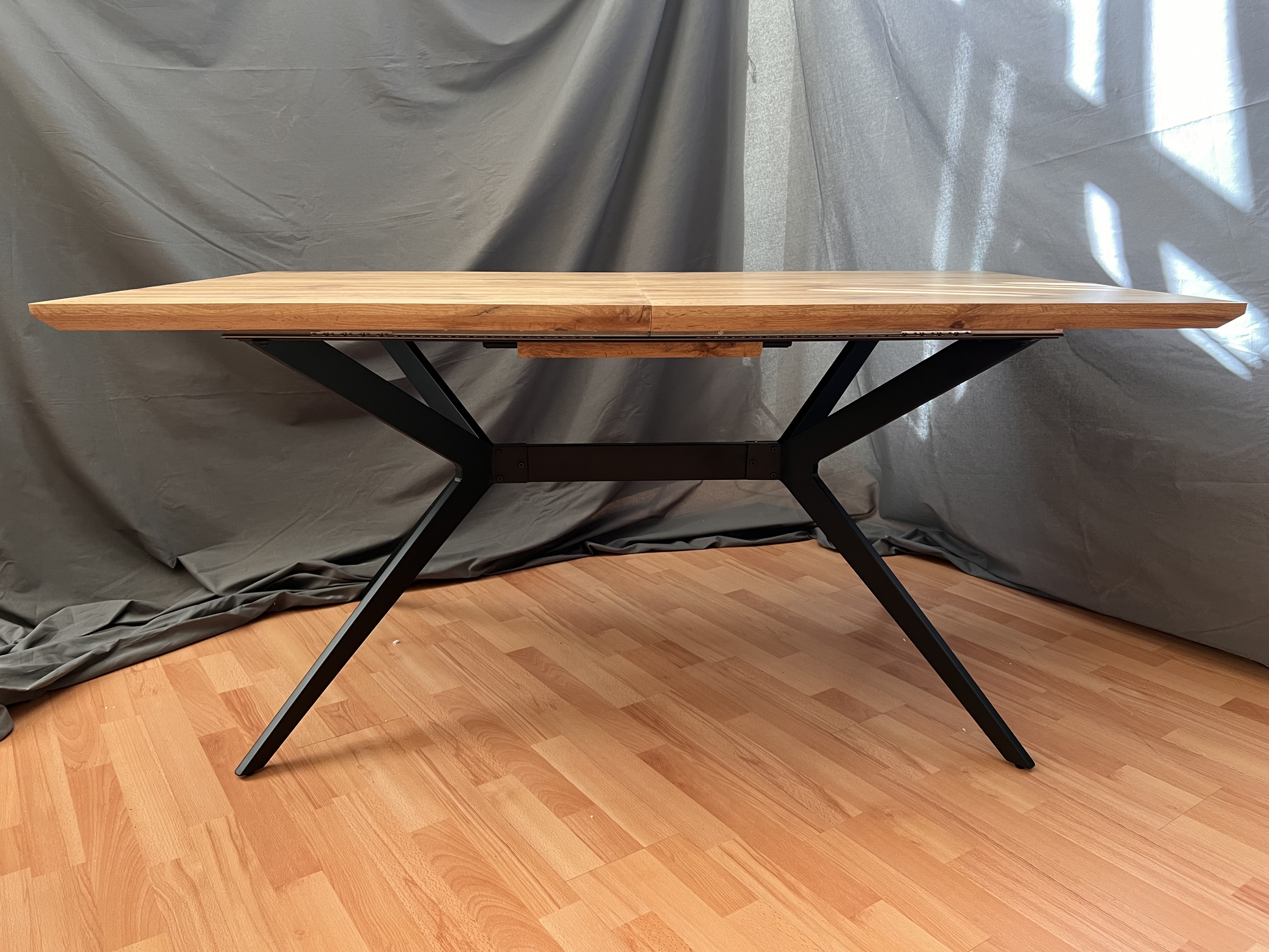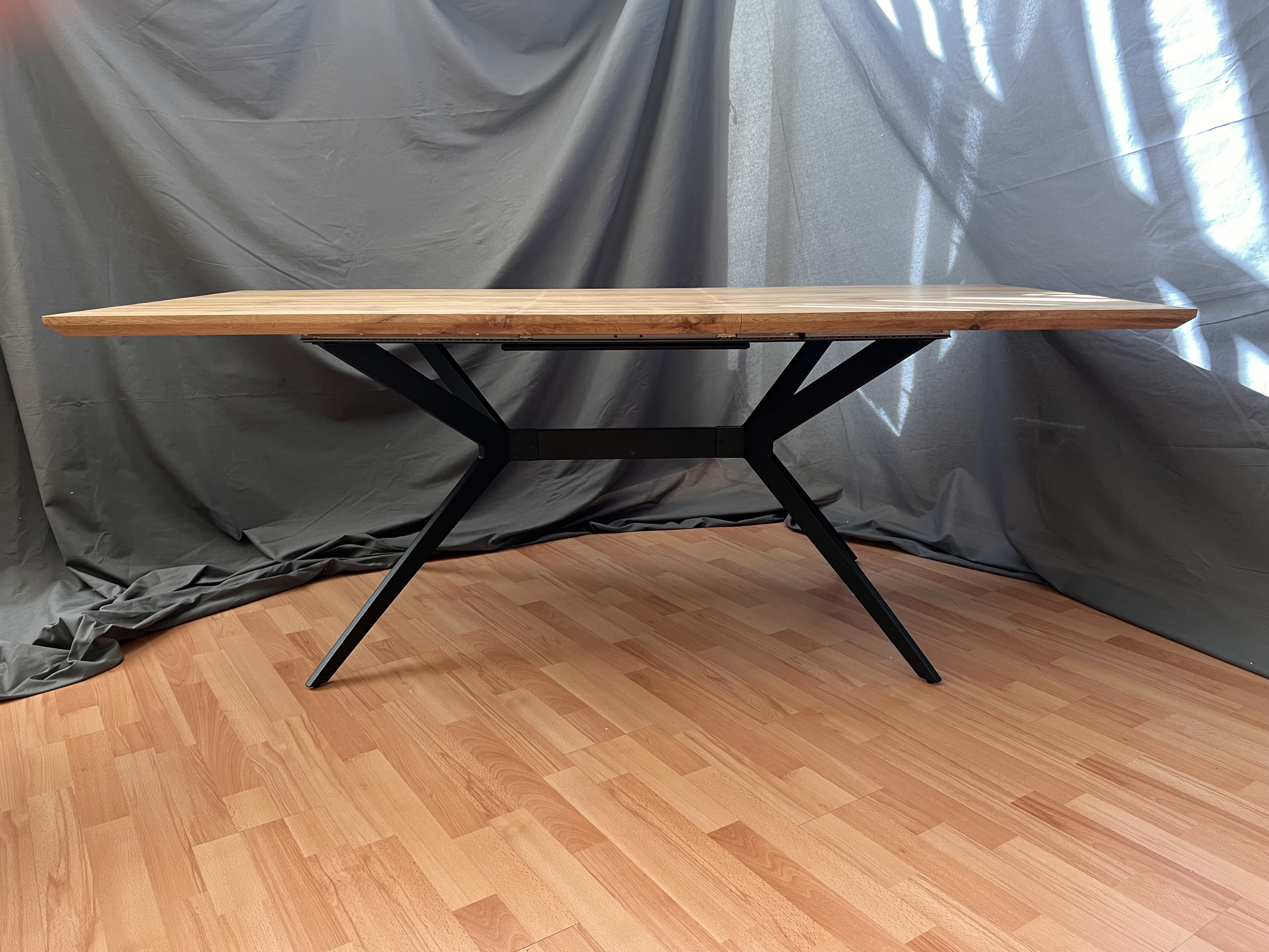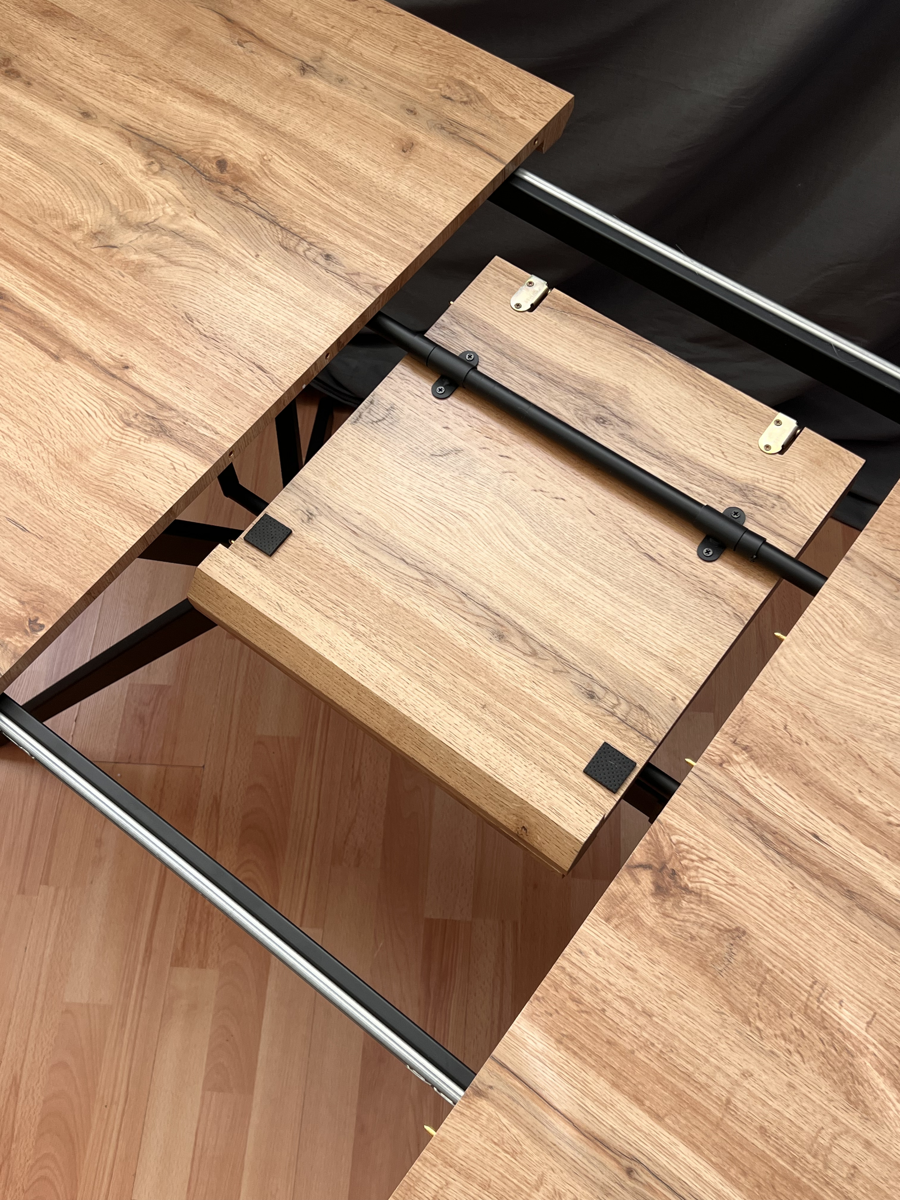 Особенностью стола является его раздвижная конструкция. В разложенном виде его длина составляет 200 см, что позволяет разместить за столом больше людей.