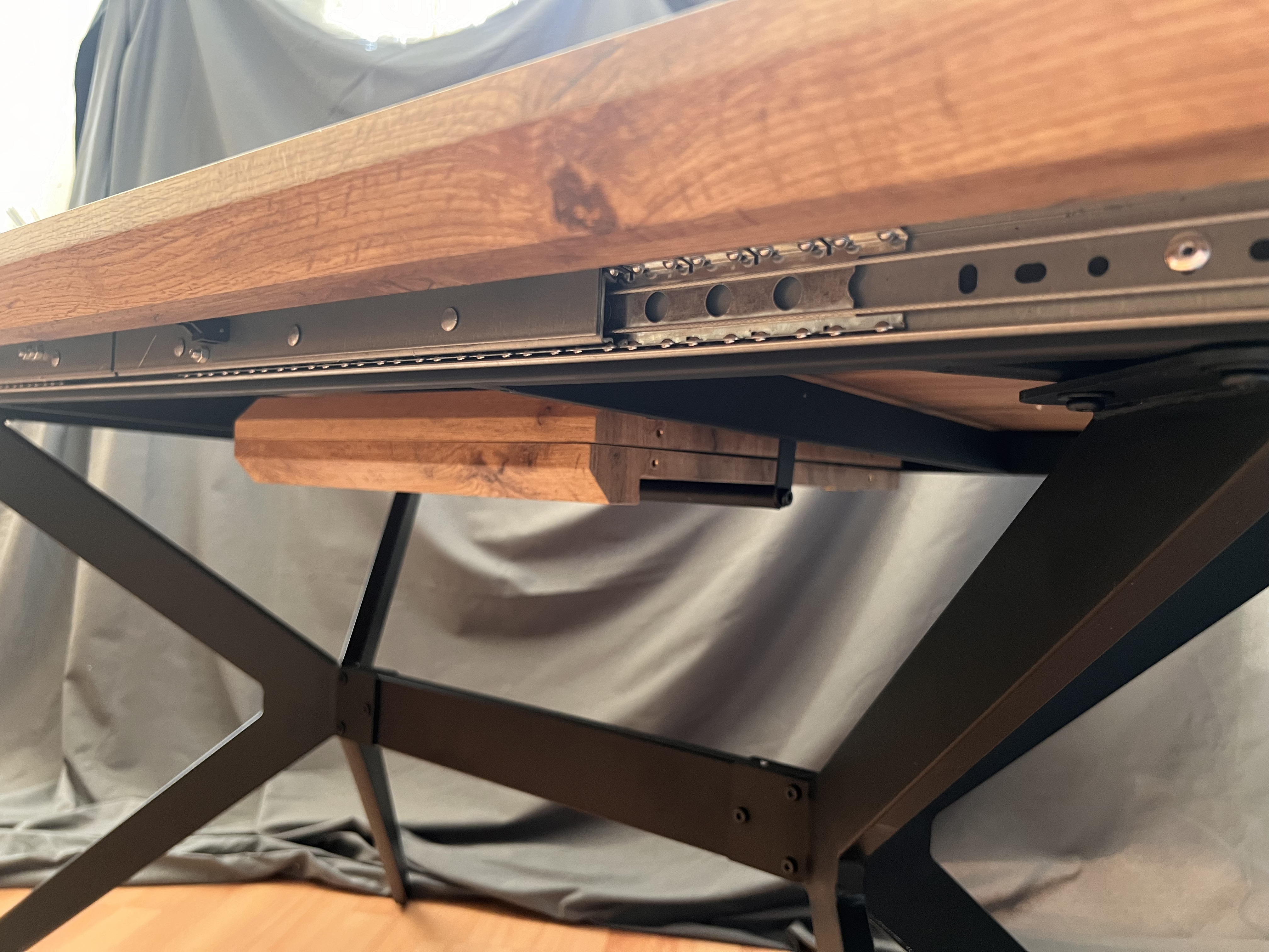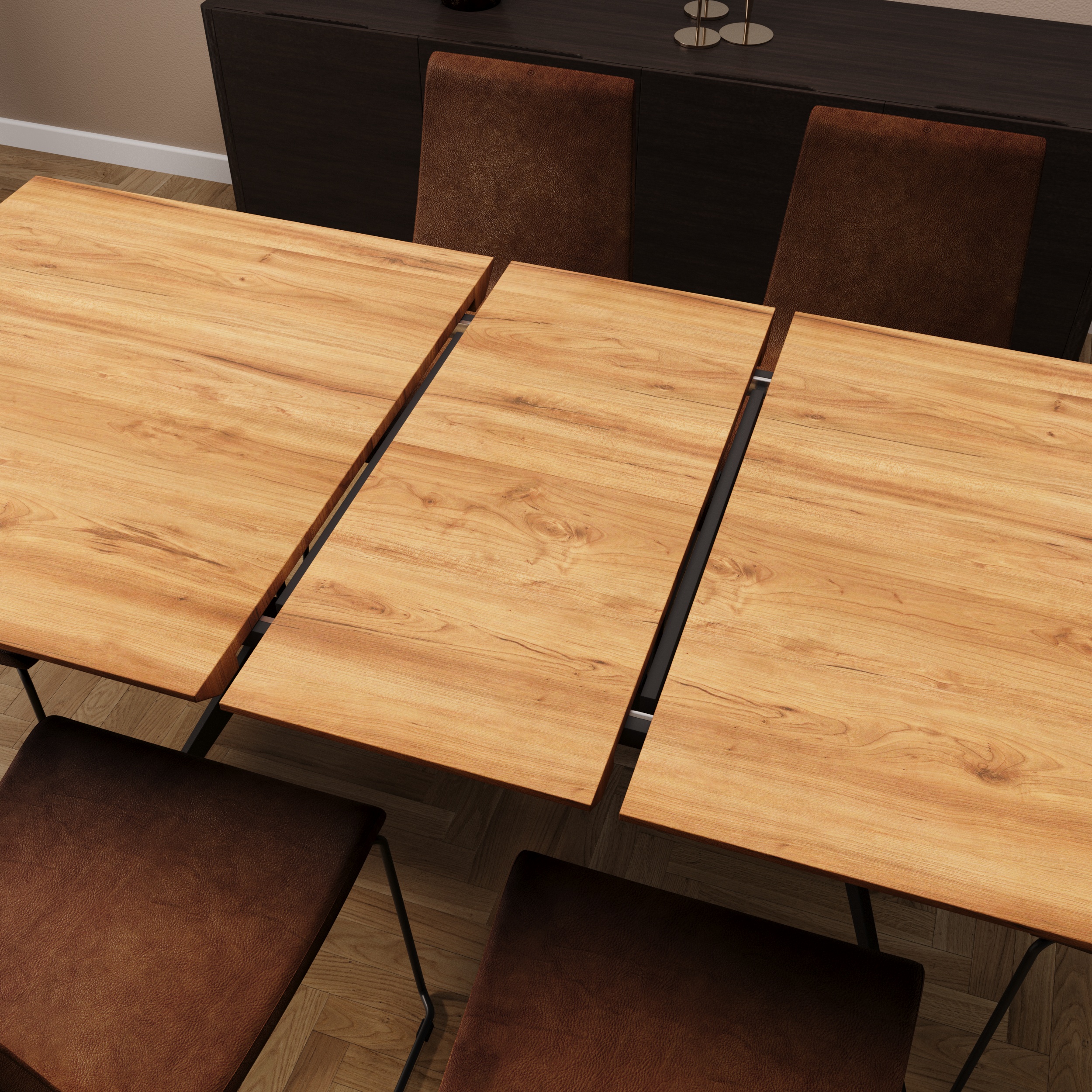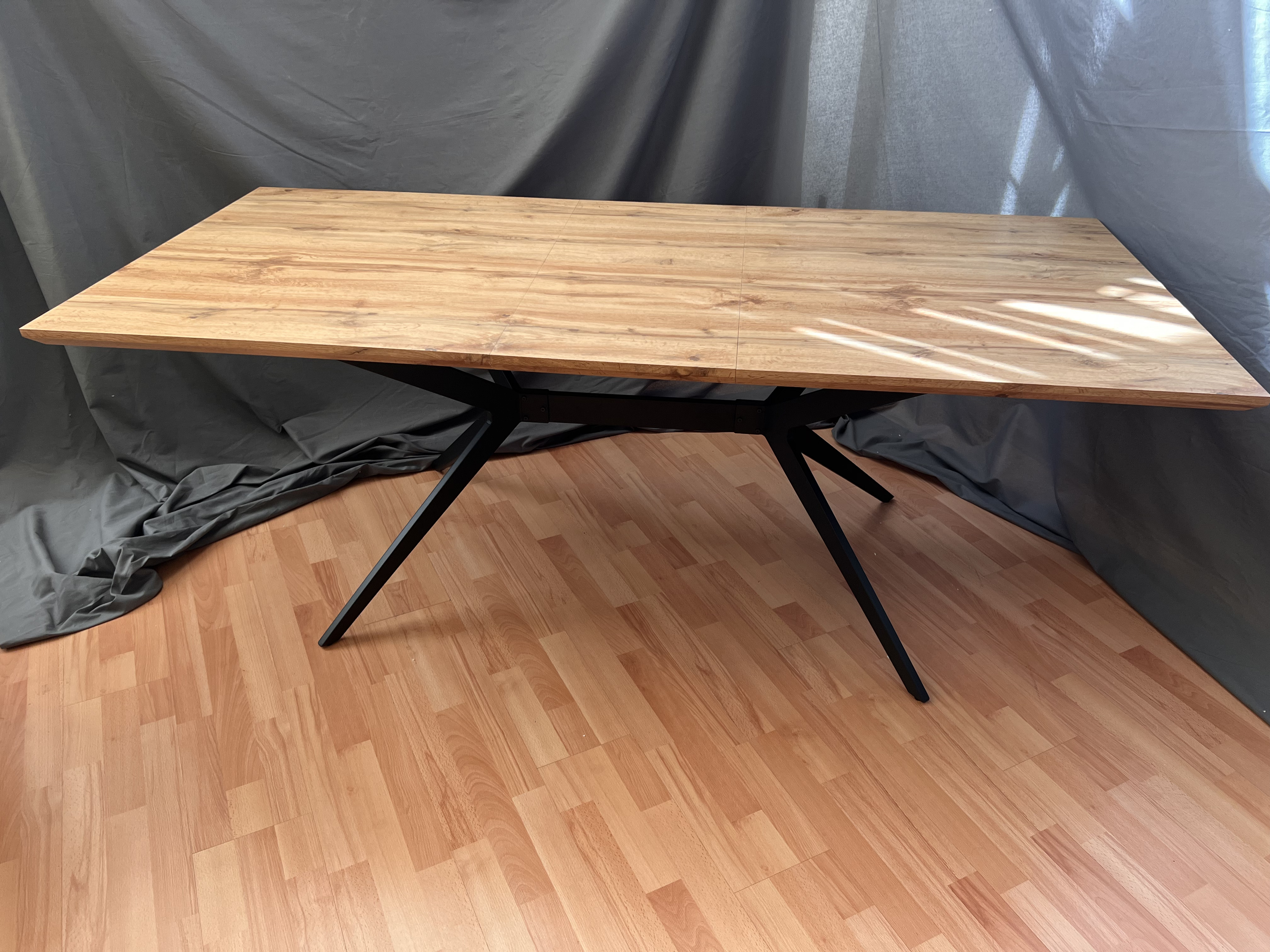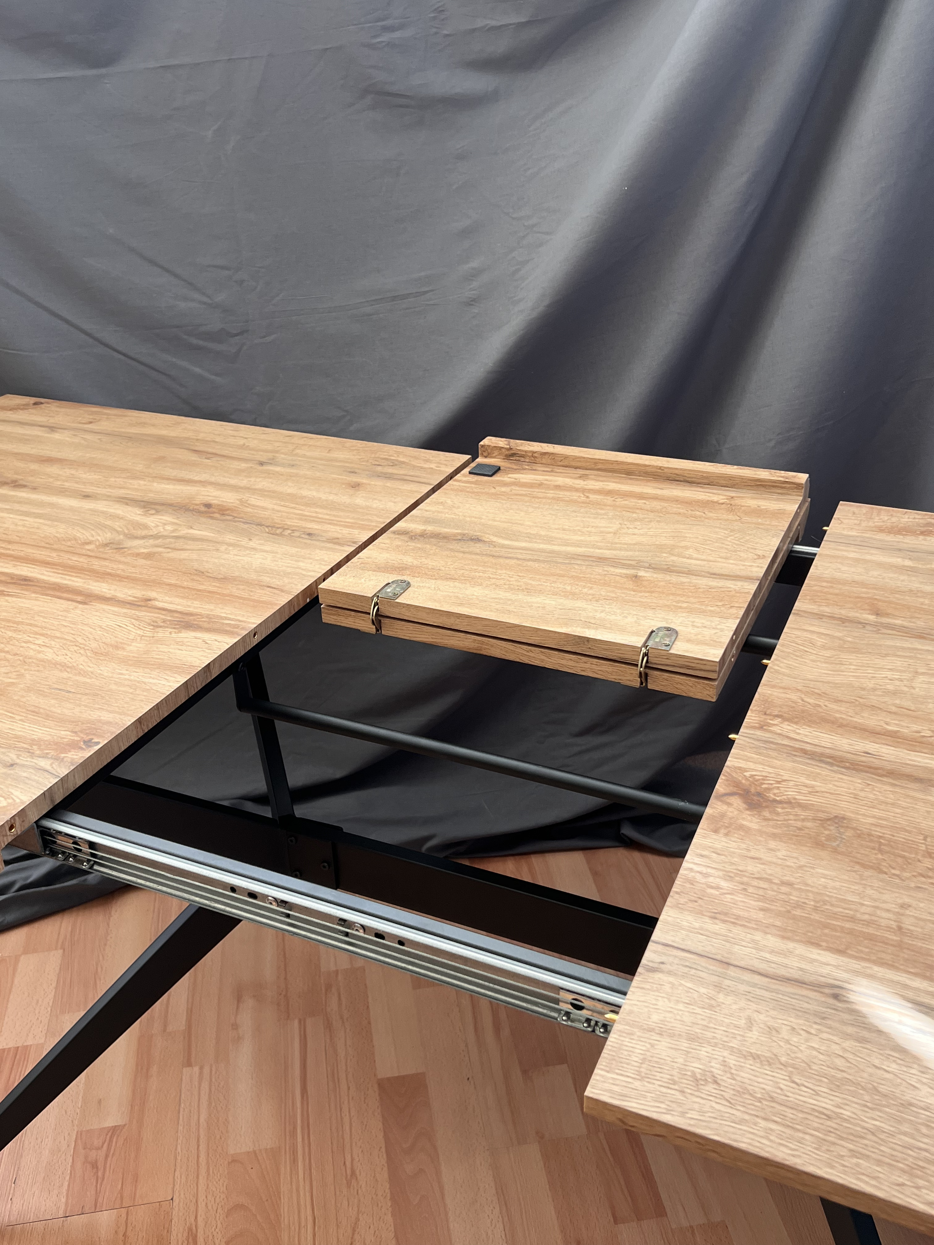 Особенностью стола является его раздвижная конструкция. В разложенном виде его длина составляет 200 см, что позволяет разместить за столом больше людей.