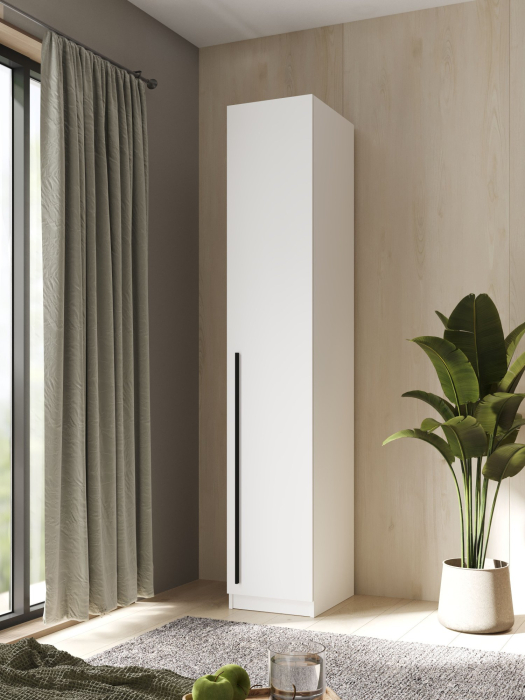 Шкаф предназначен для хранения одежды, что делает его незаменимым элементом в любом доме. Благодаря своему стильному и современному дизайну, он не только выполняет практическую функцию, но и служит украшением интерьера. Вы сможете разместить в нем как верхнюю одежду, так и различные аксессуары других сезонных вещей.
