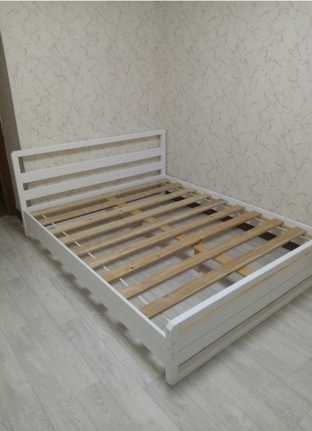 Двуспальная кровать "LIZA" ОЧЕНЬ КРЕПКАЯ так как усилена двойными рейками 20*90 мм по всем сторонам кровати. Благодаря 5 опорным стойкам по середине двуспальной кровати устойчивость повышена, чтобы выдерживать максимальный вес 200 кг.