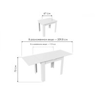 Стол «Промо Тип 4» – компактная раздвижная модель (110→209 см) с ламинированной столешницей и каркасом из ЛДСП. Удобная высота 75 см, ширина 67 см. Практичное решение для малогабаритных пространств, сочетающее функциональность и лаконичный дизайн. Вес 25 кг. Подходит для кухонь и студий.