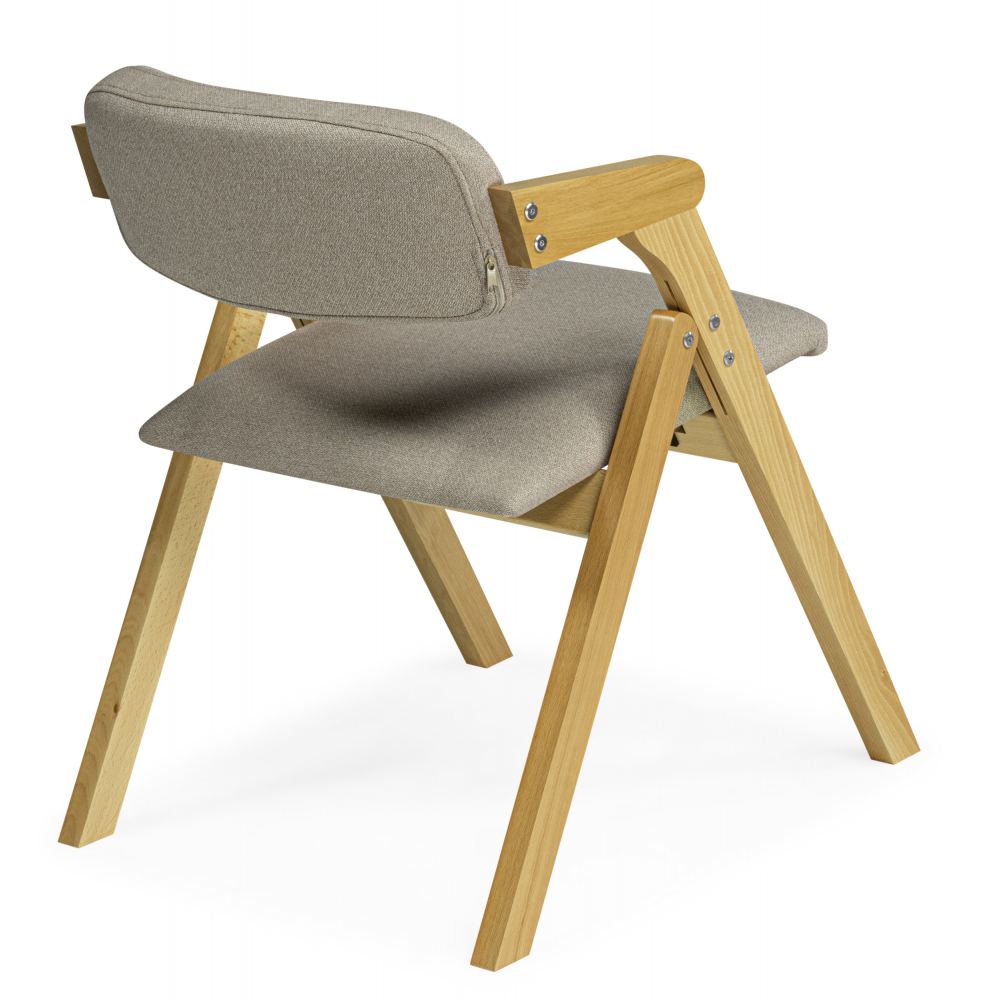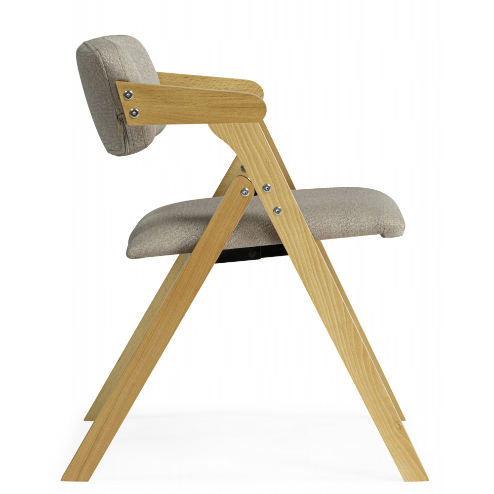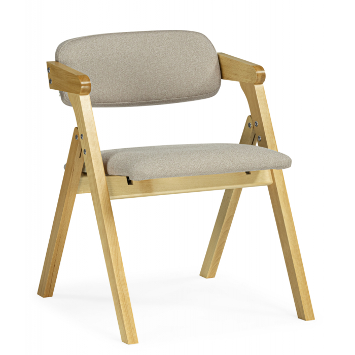 Это складной стул "Шелт" с подлокотниками и следующими характеристиками: Основные параметры: Материалы: Каркас: дерево Сиденье: ткань Обивка: ткань Размеры стула (см): Общие габариты: Ширина: 52 Глубина: 54 Высота: 70 Размер сиденья: Ширина: 44 Глубина: 47 Высота сиденья от пола: 42 Особенности: Подлокотники: есть Вращение сиденья: нет Складная конструкция: да Упаковка: Размер упаковки (1 место): 880 × 580 × 250 мм Этот стул подойдет для использования дома, на даче или в походных условиях благодаря складной конструкции и удобной высоте сиденья. Деревянный каркас обеспечивает прочность, а тканевая обивка — комфорт.