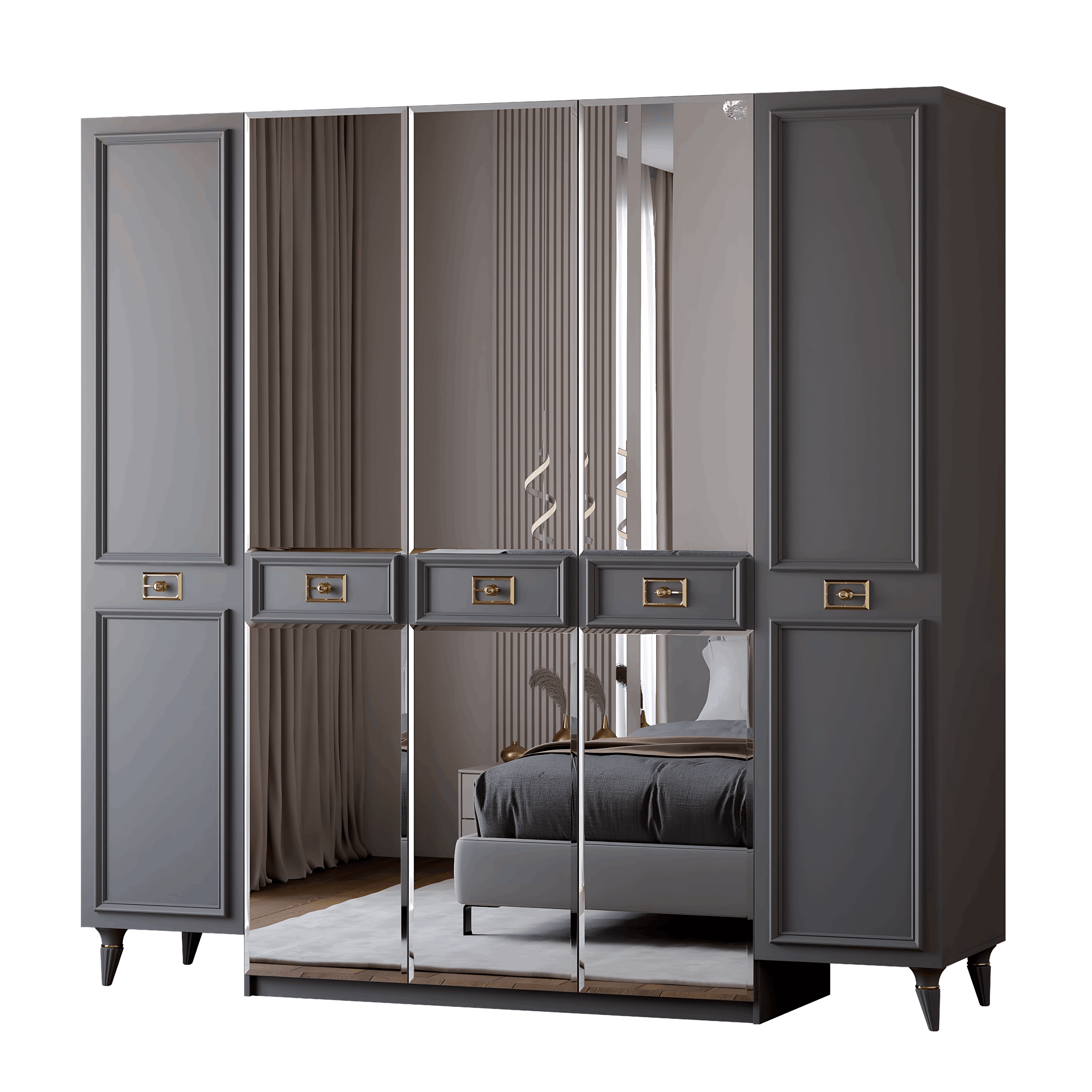Шкаф в спальню 5-ти дверный Валенсия (золото) (Серый) Код I0000442819