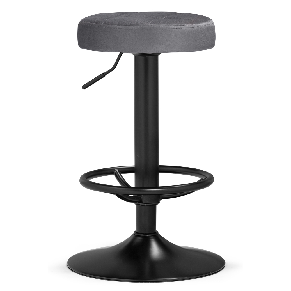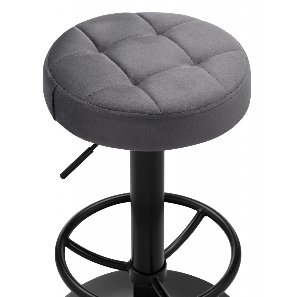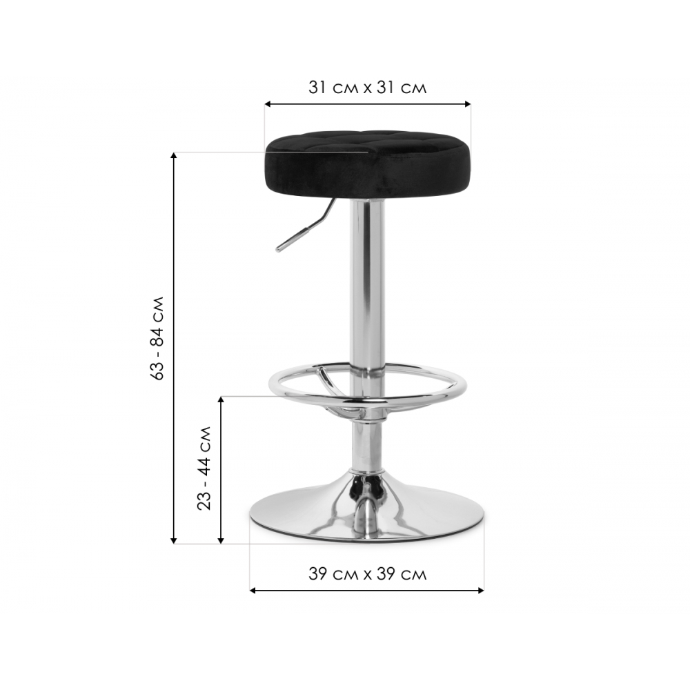 Барный стул Marun - каркас изготовлен их прочного металла, окрашенного в золотистый цвет. Велюровая обивка (100% полиэстер) - при контакте не будет дискомфорта, т.к. материал сохраняет тепло и не будет холодным. Высота подножки: 23 - 44 см. Высота сиденья регулируется от 63 до 84см