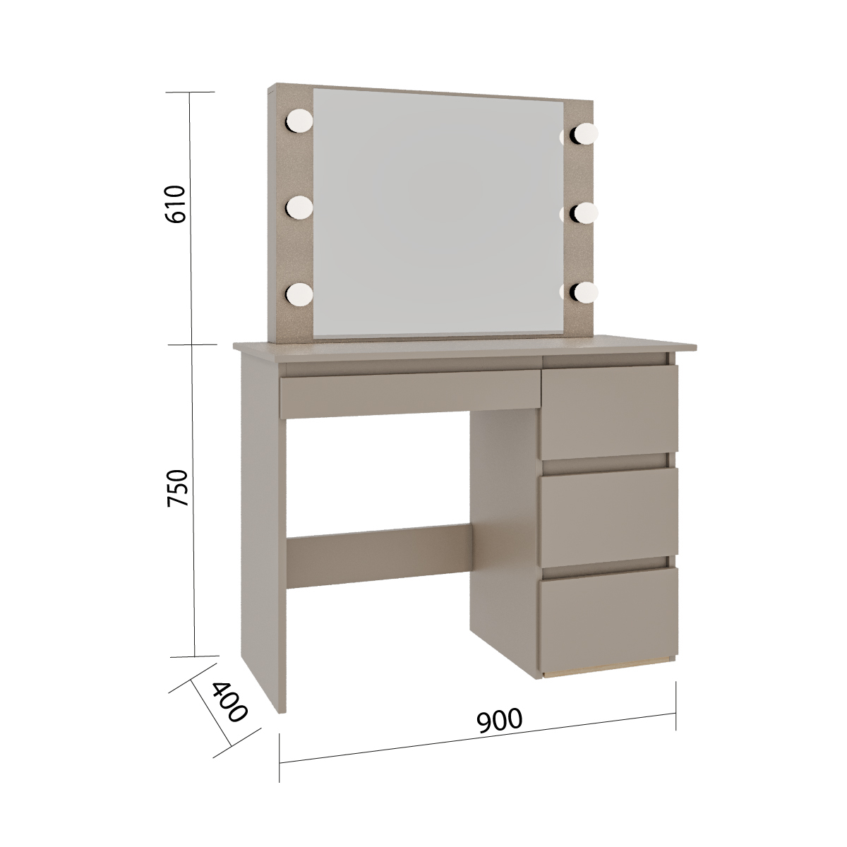 Имеет три вместительных ящика на роликовых направляющих , для Ваших аксессуаров, украшений и косметики.