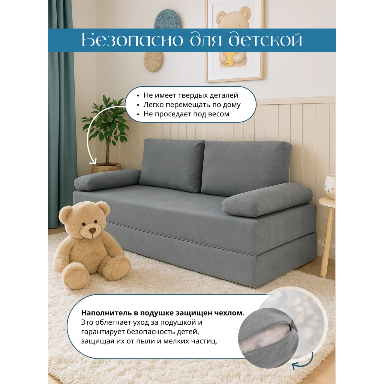 Представляем бескаркасный диван-кровать Спенсер — идеальный выбор для любого интерьера. Благодаря своему компактному размеру и стильному дизайну, он станет незаменимым элементом вашей гостиной, спальни, детской или даже лоджии. Эта модель не только красива, но и функционална: она легко трансформируется в удобное спальное место с размерами 185 см на 140 см. В разложенном состоянии образуется ровная спальная поверхность, обеспечивающая комфорт во время сна. Диапазон возможностей делает его идеальным для малогабаритных квартир, где важна каждая деталь. Использование высококачественного микровелюра в обивке обеспечивает долговечность и легкость в очищении, что особенно важно для семей с детьми, подростками и домашними животными. Антивандальное покрытие защитит диван от повреждений, а его спальное место создано для комфортного отдыха, обеспечивая необходимую поддержку благодаря высокоэластичному пенополиуретану. Наружный чехол легко снимается для чистки благодаря застежкам-молниям. Экологически чистые материалы и продуманный дизайн позволят создать уютную атмосферу в комнате. Удобные съемные подушки обеспечивают дополнительный комфорт во время отдыха, а легкость конструкции позволяет без труда перемещать диван из комнаты в комнату. Книжка подходит не только для квартиры, но и для дачи. Стильный вид впишется в любой интерьер — от лофта до модерна. Запланируйте вечерние посиделки с друзьями или уютные ночевки с близкими, не беспокоясь о недостатке пространства. Это практичное решение для тех, кто ценит стиль и функциональность в одном. К тому же, вакуумный диван поставляется в скрученном виде, что значительно упрощает транспортировку и размещение в помещениях с ограниченным пространством. Создайте идеальное место для отдыха со Спенсером, который будет радовать вас и ваших гостей на протяжении многих лет.