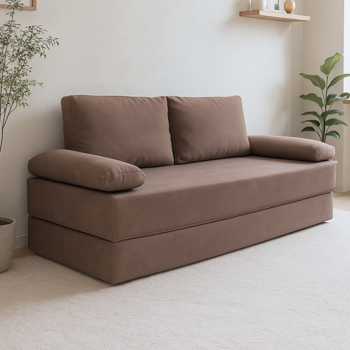Представляем бескаркасный диван-кровать Спенсер — идеальный выбор для любого интерьера. Благодаря своему компактному размеру и стильному дизайну, он станет незаменимым элементом вашей гостиной, спальни, детской или даже лоджии. Эта модель не только красива, но и функционална: она легко трансформируется в удобное спальное место с размерами 185 см на 140 см. В разложенном состоянии образуется ровная спальная поверхность, обеспечивающая комфорт во время сна. Диапазон возможностей делает его идеальным для малогабаритных квартир, где важна каждая деталь. Использование высококачественного микровелюра в обивке обеспечивает долговечность и легкость в очищении, что особенно важно для семей с детьми, подростками и домашними животными. Антивандальное покрытие защитит диван от повреждений, а его спальное место создано для комфортного отдыха, обеспечивая необходимую поддержку благодаря высокоэластичному пенополиуретану. Наружный чехол легко снимается для чистки благодаря застежкам-молниям. Экологически чистые материалы и продуманный дизайн позволят создать уютную атмосферу в комнате. Удобные съемные подушки обеспечивают дополнительный комфорт во время отдыха, а легкость конструкции позволяет без труда перемещать диван из комнаты в комнату. Книжка подходит не только для квартиры, но и для дачи. Стильный вид впишется в любой интерьер — от лофта до модерна. Запланируйте вечерние посиделки с друзьями или уютные ночевки с близкими, не беспокоясь о недостатке пространства. Это практичное решение для тех, кто ценит стиль и функциональность в одном. К тому же, вакуумный диван поставляется в скрученном виде, что значительно упрощает транспортировку и размещение в помещениях с ограниченным пространством. Создайте идеальное место для отдыха со Спенсером, который будет радовать вас и ваших гостей на протяжении многих лет.