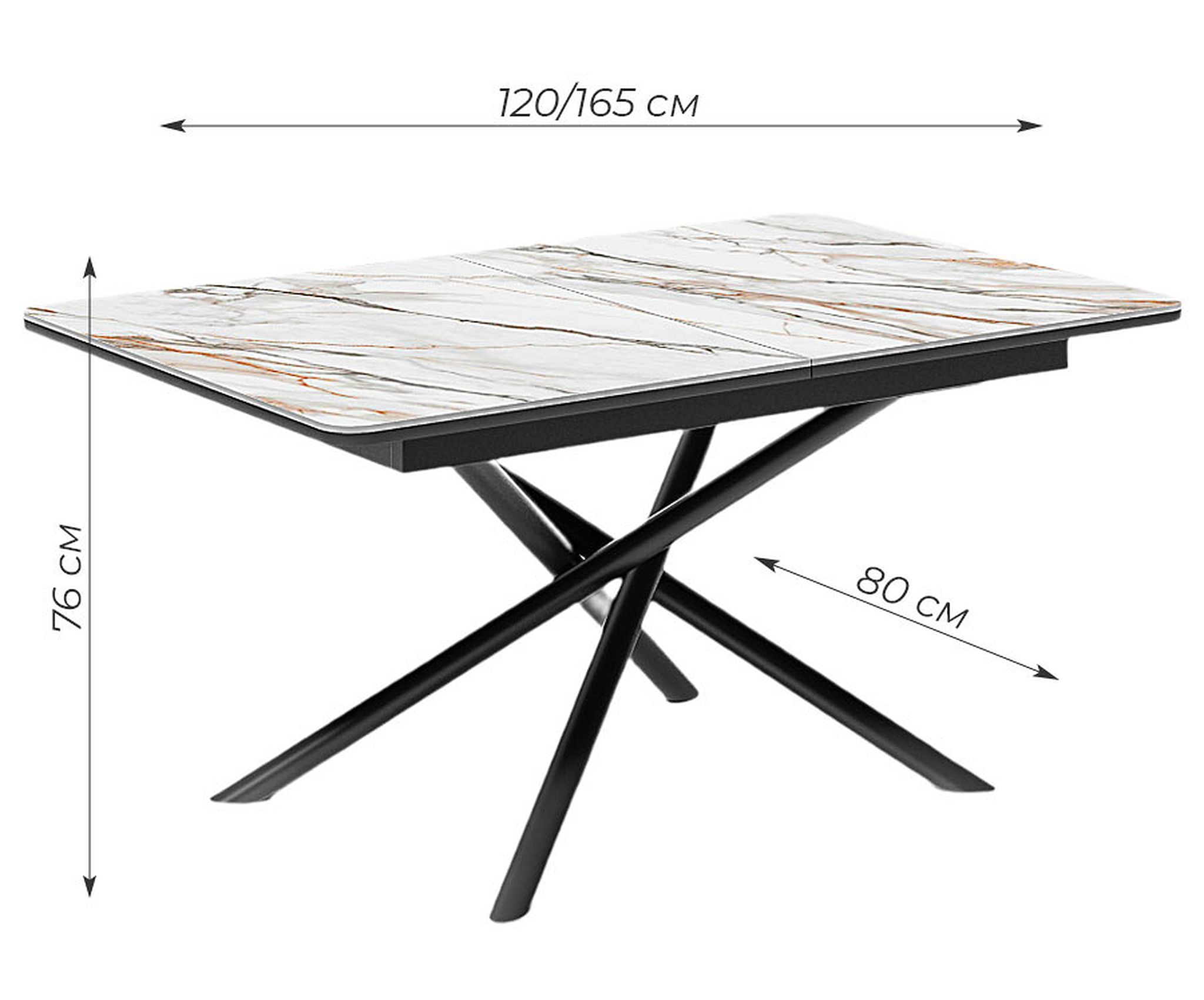 Размер стола в разложенном виде В-760 мм, Ш-1650 мм, Г-800 мм