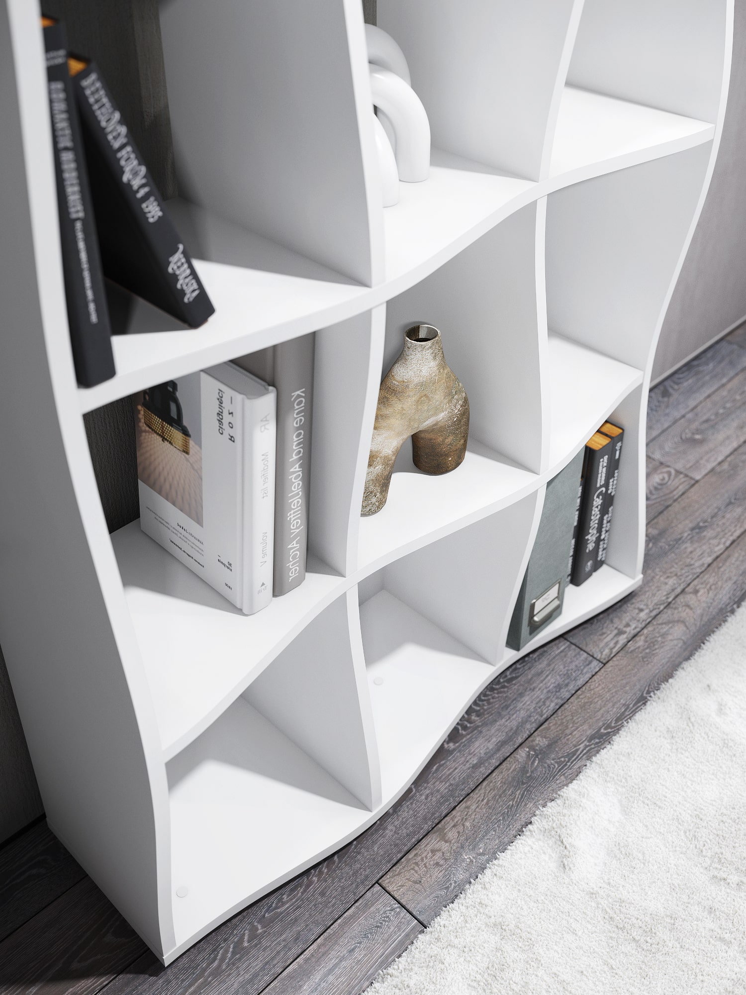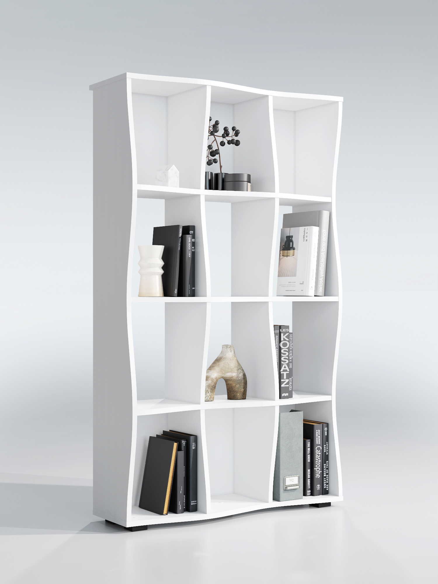 Функциональность: открытые полки для хранения книг, аксессуаров и декора.