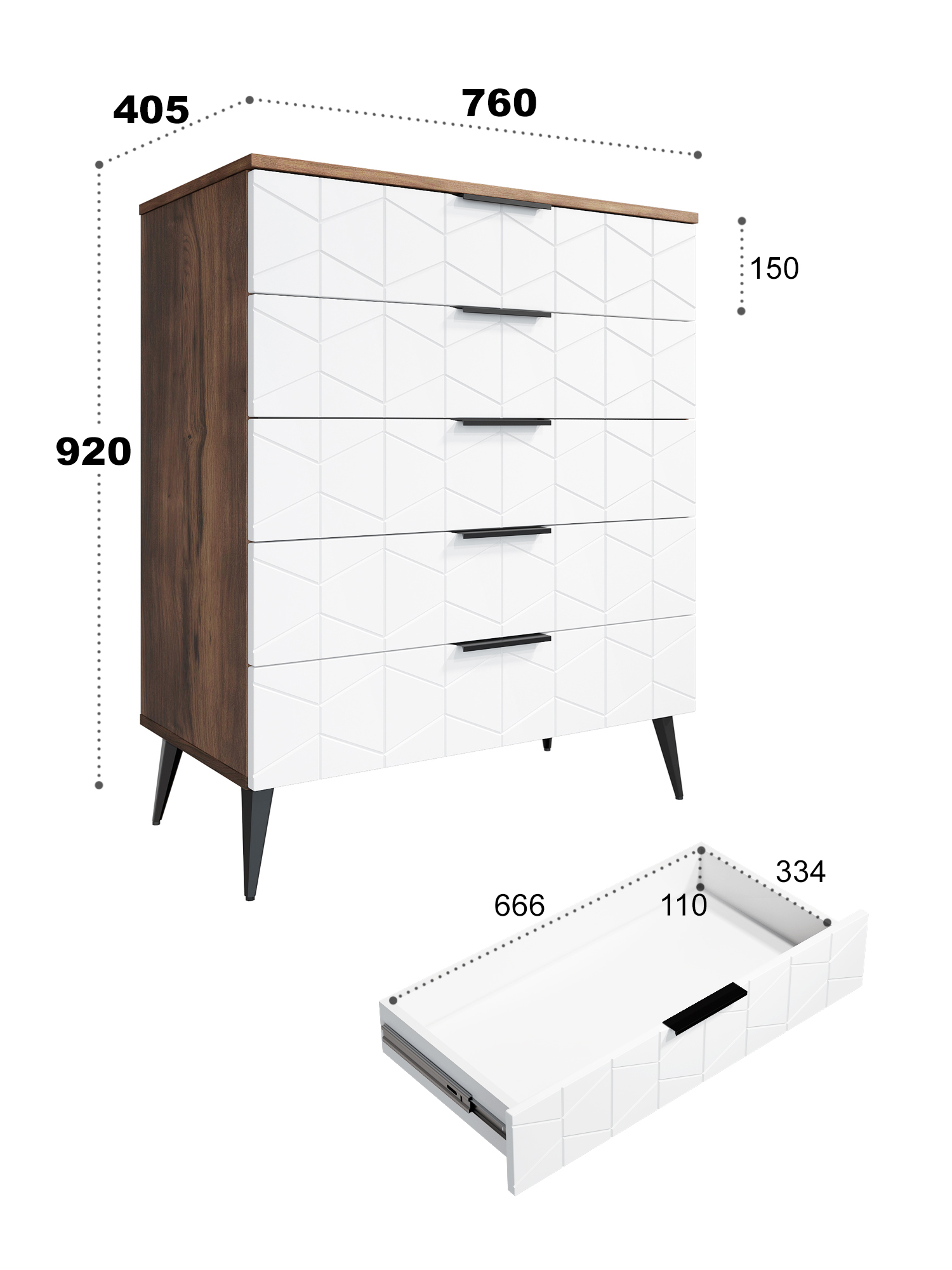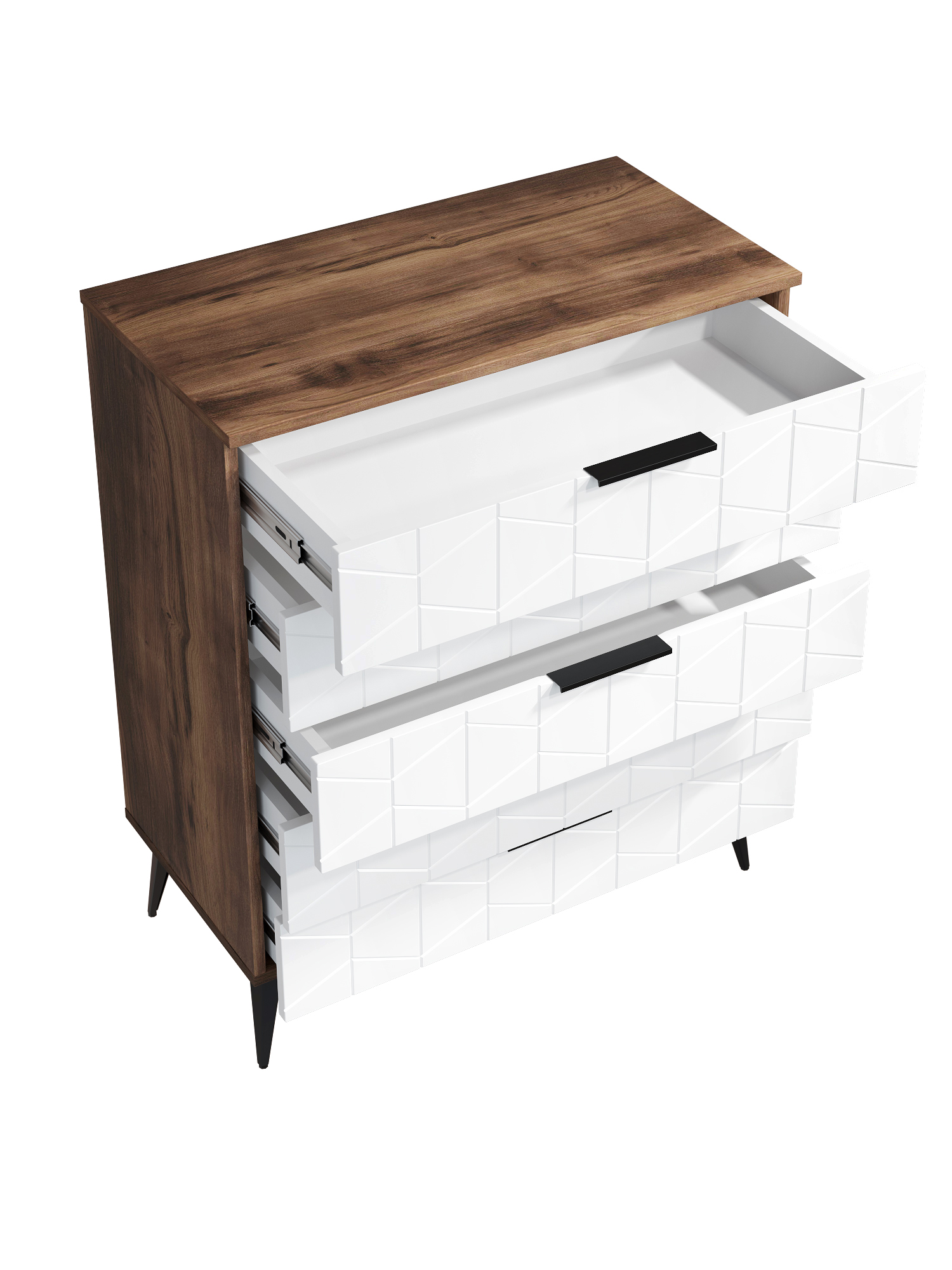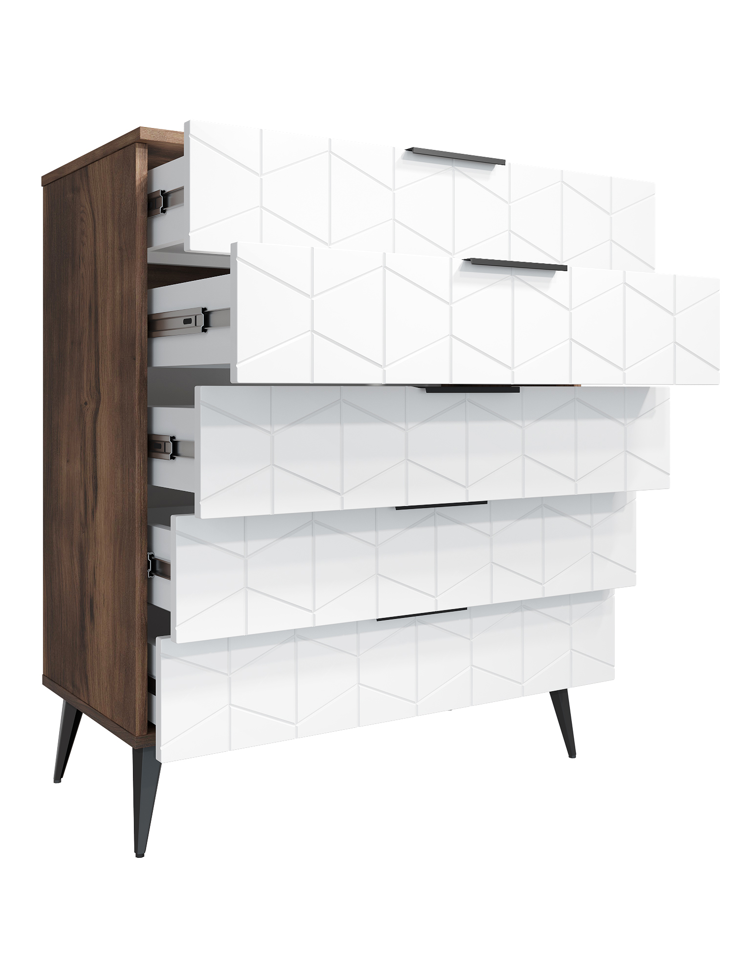 Пять выдвижных ящиков на телескопических направляющих