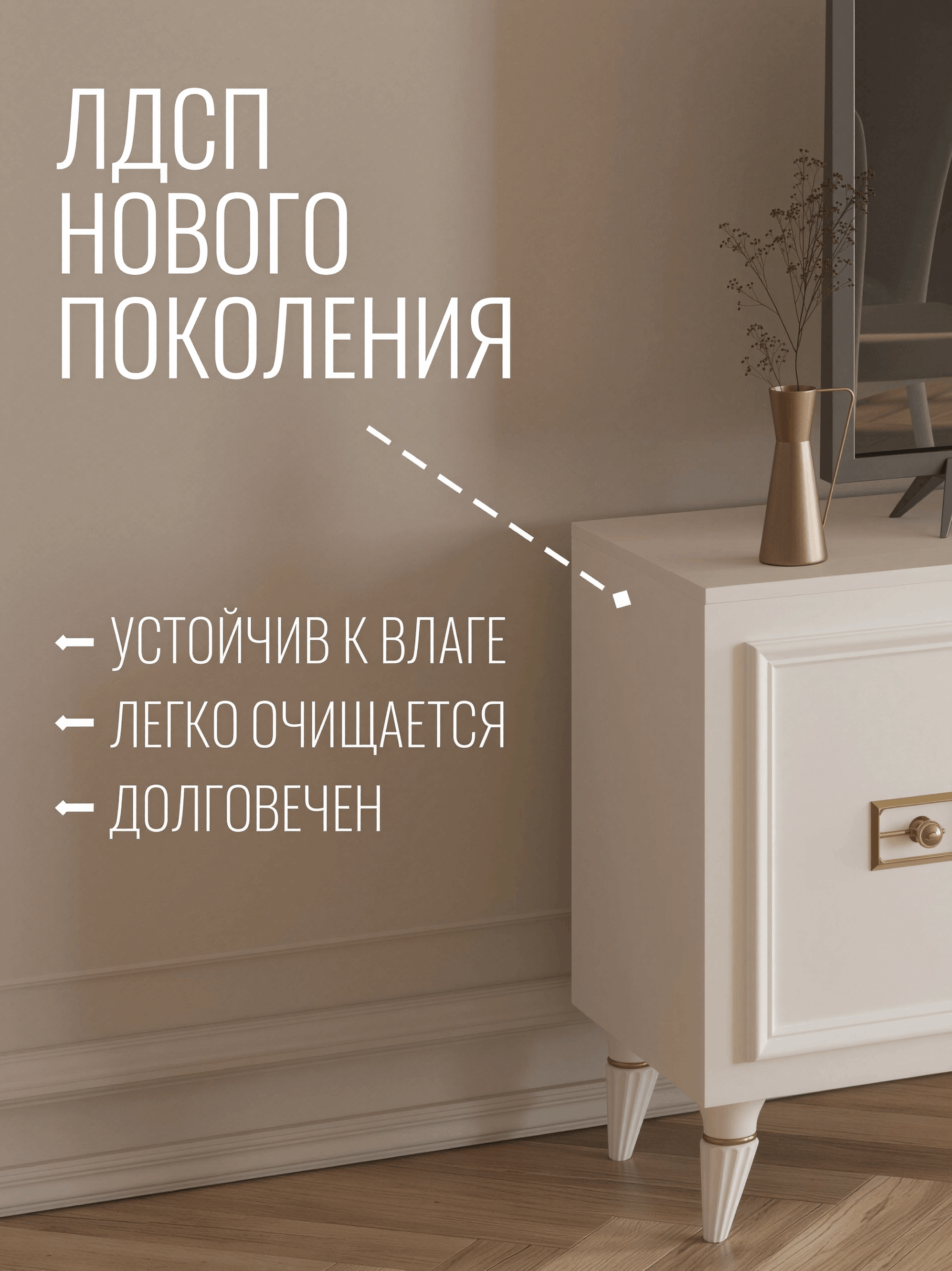Представляем вам изысканную тумбу ТВ в стиле неоклассика, созданную для тех, кто ценит элегантность и изысканность в каждой детали. Этот функциональный и стильный предмет мебели станет идеальным дополнением вашего интерьера, придавая ему атмосферу роскоши и утонченности. Тумба изготовлена из высококачественного ЛДСП, обладает не только привлекательным внешним видом, но и долговечностью. Материал обеспечивает надежность конструкции и устойчивость к механическим повреждениям, что делает её идеальным выбором для долгосрочного использования. Специально разработанная конструкция тумбы обеспечивает оптимальное размещение телевизора и другой мультимедийной техники. Ящики и полки предоставляют достаточно места для хранения дисков, пультов управления и других необходимых аксессуаров. Тумба для ТВ отличается изысканными декоративными элементами, добавляющими изысканности и уникальности. Её изогнутые линии, изящные резные узоры и изумительная отделка создают гармоничное сочетание с современной техникой, добавляя интерьеру неповторимого шарма. Если вы ищете мебель, которая объединяет в себе функциональность, стиль и качество, тумба для ТВ в стиле неоклассика из ЛДСП – идеальное решение. Позвольте этой тумбе подчеркнуть уникальность вашего пространства и создать атмосферу уюта и роскоши одновременно.