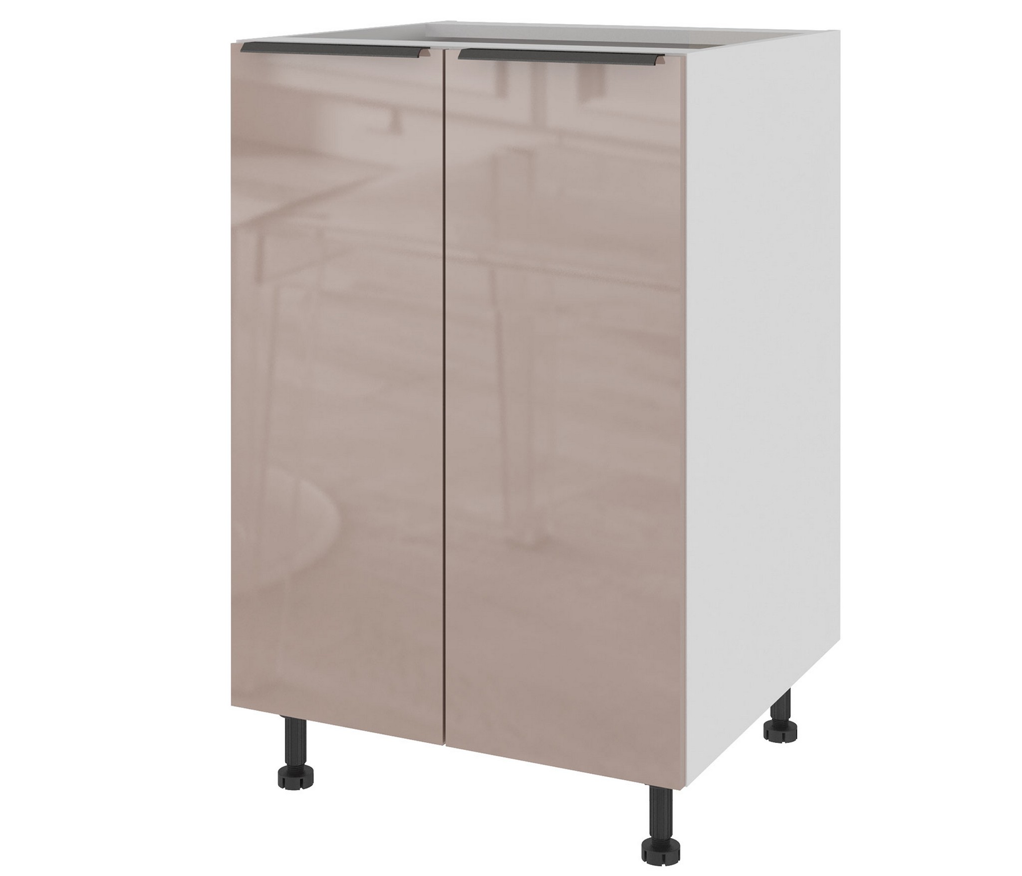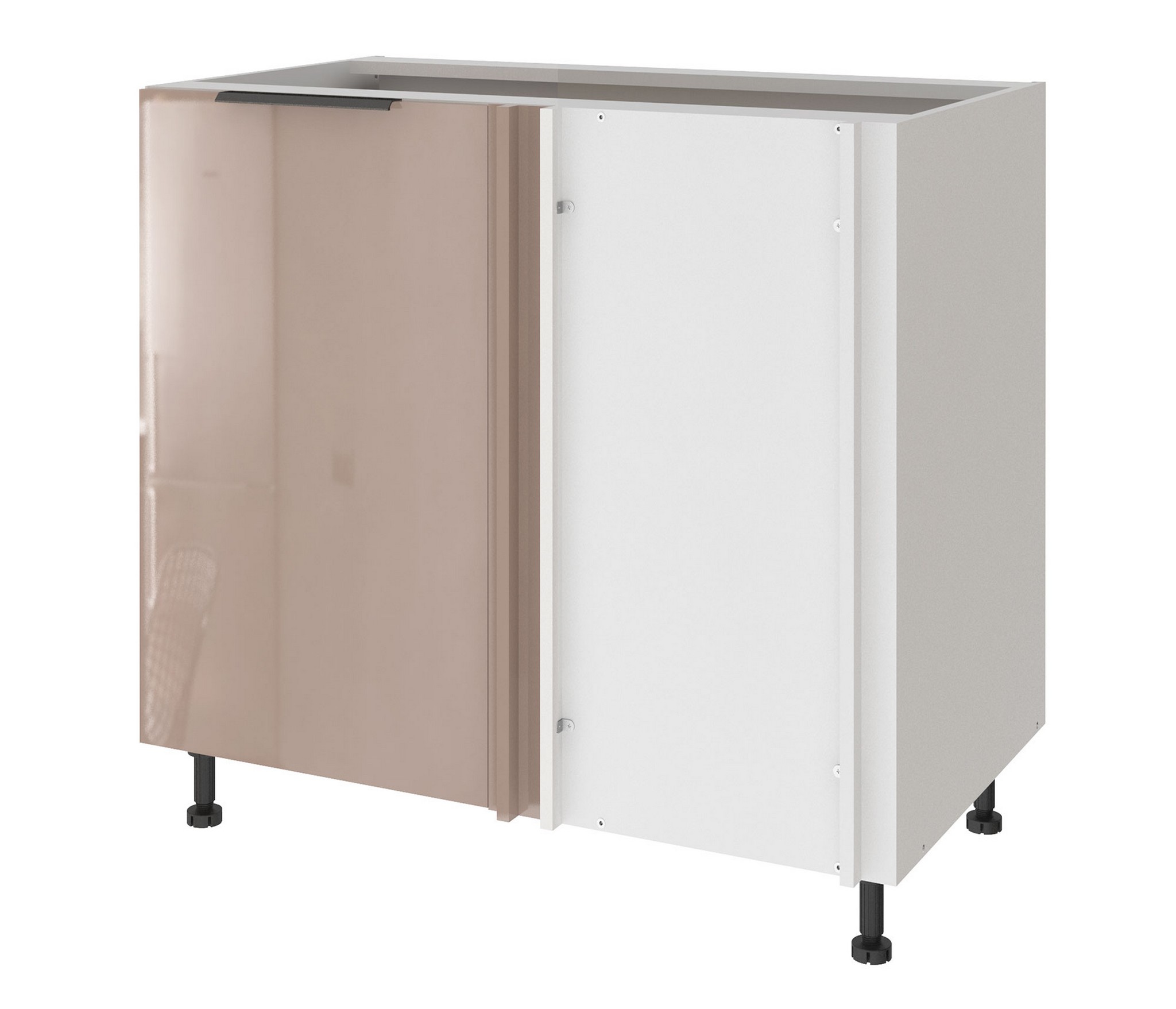 • Регулируемые опоры высотой 100 мм выравнивают нижние модули на неровном полу, обеспечивают устойчивость всей системы и защищают мебель от контакта с водой при уборке.