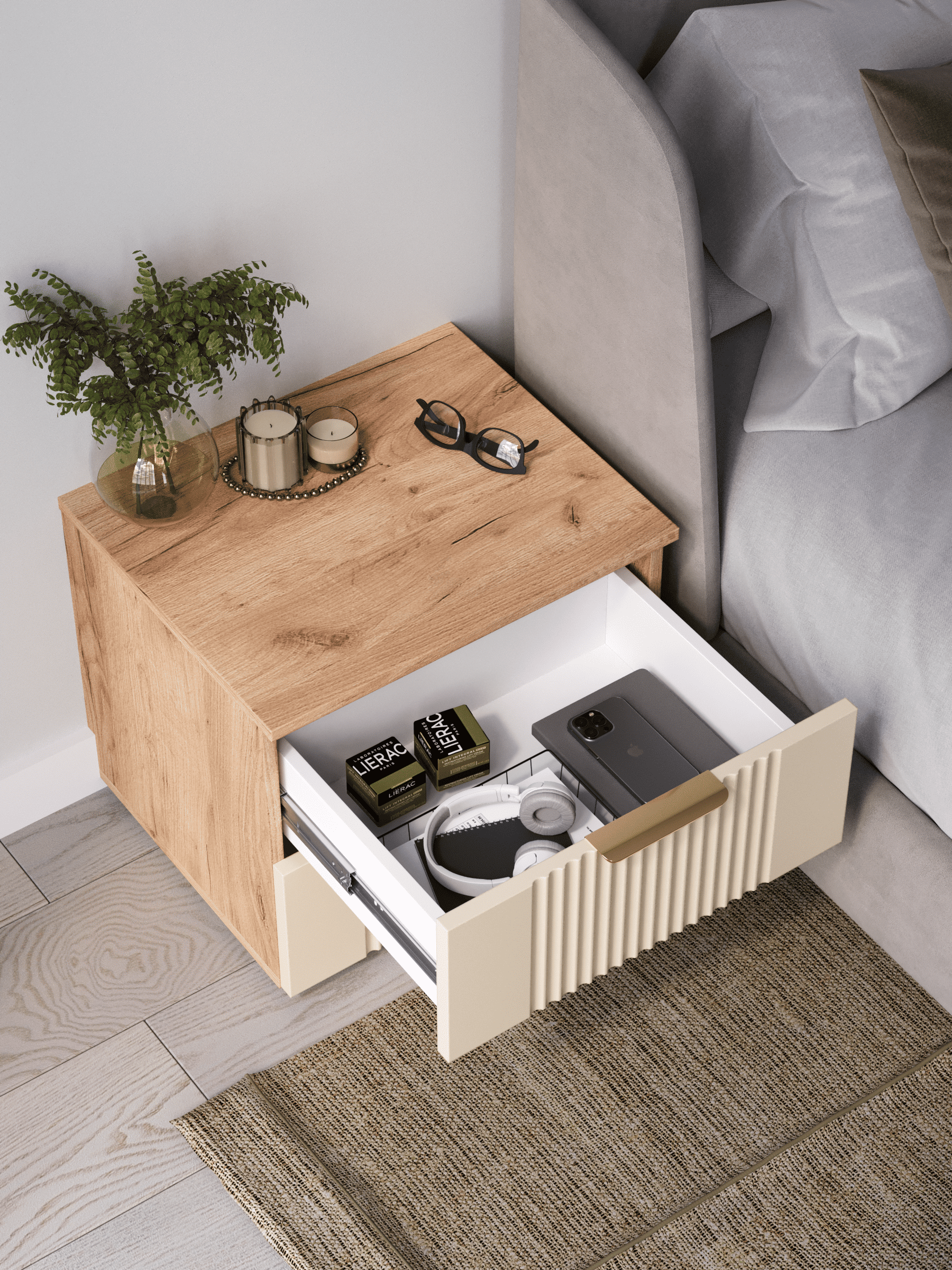 Прикроватная тумба с ящиками, соединяет в себе комфорт, функциональность и эстетику. Наша прикроватная тумба напольная Ингрия Luxe 2 российского производства выглядят легко и современно, идеально впишется в лофт, скандинавский, современный, минимализм и прочие популярные стили интерьеров. Ее минималистичный дизайн придадут легкость и простор всему вашему интерьеру. Тумба напольная размером 50х44х42 (ШхВхГ) см, компактная тумба сэкономит пространство и организует грамотное хранение вещей. Тумба с двумя выдвижными ящиками изготовлен из материалов высокого качества. За высокопрочность и долговечность отвечает корпус, выполненный из ЛДСП, подходит для активного использования. За эстетику и лаконичность дизайна отвечает фасад из МДФ созданный путем сложной фрезеровки в виде стильного 3D рисунка. Накладная алюминиевая ручка 128 мм подчеркивает монолитный образ. За удобство и комфорт открывания отвечают шариковые направляющие (без доводчиков), с полным выдвижением. Ящики с такой системой открывания будут ходить практически бесшумно, и выдвигаться полностью, даже при повышенной нагрузке. Высокий мебельный модуль имеет регулируемые ножки, что позволит выставить узкий шкаф на устойчивую и нужную вам высоту. Небольшая тумба-столик поставляется в разобранном виде, пусть это вас не пугает. В комплекте предусмотрены все необходимые комплектующие, подробная инструкция и фурнитура, чтобы тумба прикроватная не отняла много времени на сборку. Современная мебель должна не только брать на себя пару задач по организации пространства, но и гармонично смотреться, выполняя нужные нам функции. Поэтому нашу тумбу можно использовать в разных помещениях в гостиной, спальне, прихожей (коридоре), в детской, в офисе, в салоне красоты, на балконе. Тумбочка Ингрия справится со всеми возложенными на нее функциями. Эта узкая тумба является очень вместительной, по этому вы можете использовать её как панель под телевизор, как модуль мебельный под одежду, ниша для вещей, полка под аквариум, тумба в прихожую, шкафчик под принтер, как прикроватная подставка, например, для телефона, стакана с водой, будильника и прочих мелочей, которые могут понадобиться среди ночи. Перед отправкой мебели, наши комоды и тумбы проходят проверку на наличие брака. Для целостности и сохранности каждого изделия мы разработали усиленную, надежную упаковку. Европейское качество от российского производителя - по доступным ценам.