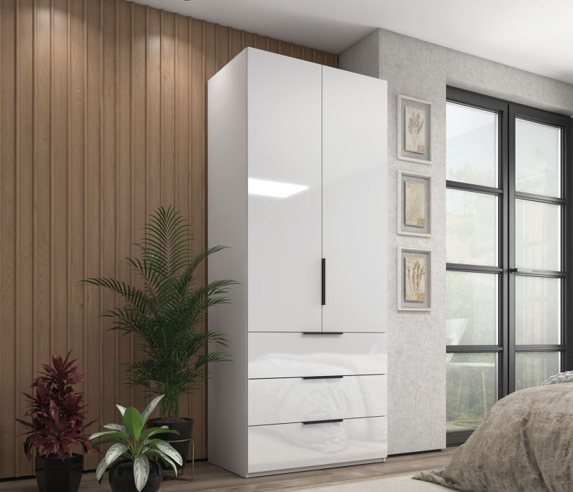 Коллекция шкафов «Люкс» - это линейка современных шкафов для тех, кто ценит эффектный внешний вид и продуманную функциональность. Мебель выполнена в актуальной комбинированной гамме: корпус в цветах Белый и Дуб крафт сочетается с фасадами Белый глянец, что позволяет легко вписать шкафы в светлый современный интерьер и визуально расширить пространство.