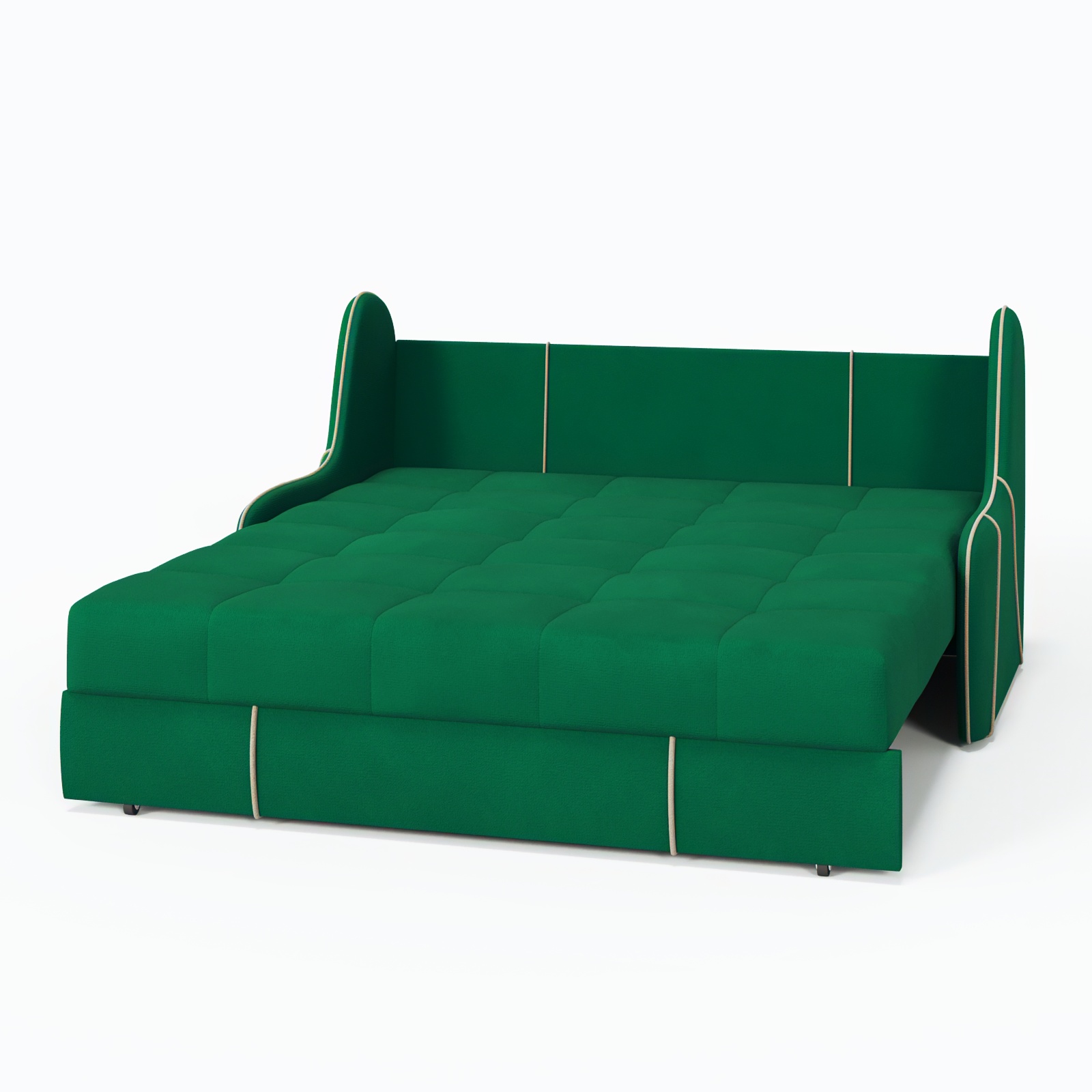 Продуманный механизм «аккордеон» обеспечивает быстрое превращение в удобное спальное место размером 120×200 см, а прочный каркас из натурального дерева и металла гарантирует долгий срок службы.