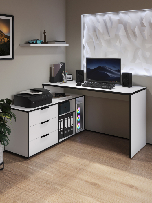 Размеры модуля (ш/в/г) в мм: 1269/1135/1004х880х553 Материал корпуса/фасада: ЛДСП 16 мм, МДФ 16 мм Основные характеристики стола ОП-21: дно ящиков — ДВП 3 мм. прочная стальная опора и тумба с четырьмя выдвижными ящиками для удобного хранения. столешница изготовлена из ЛДСП 16 мм. Преимущества стола ОП-21: Универсальность: подходит для использования в качестве письменного, компьютерного или маникюрного стола. Рекомендуется высокий стул. Фурнитура: телескопические направляющие полного выдвижения без доводчиков, металлические ручки и опора. Доставка и сборка: мебель поставляется в разобранном виде, в надежной упаковке, с подробной инструкцией по сборке. Сборка осуществляется самостоятельно или с привлечением специалистов.