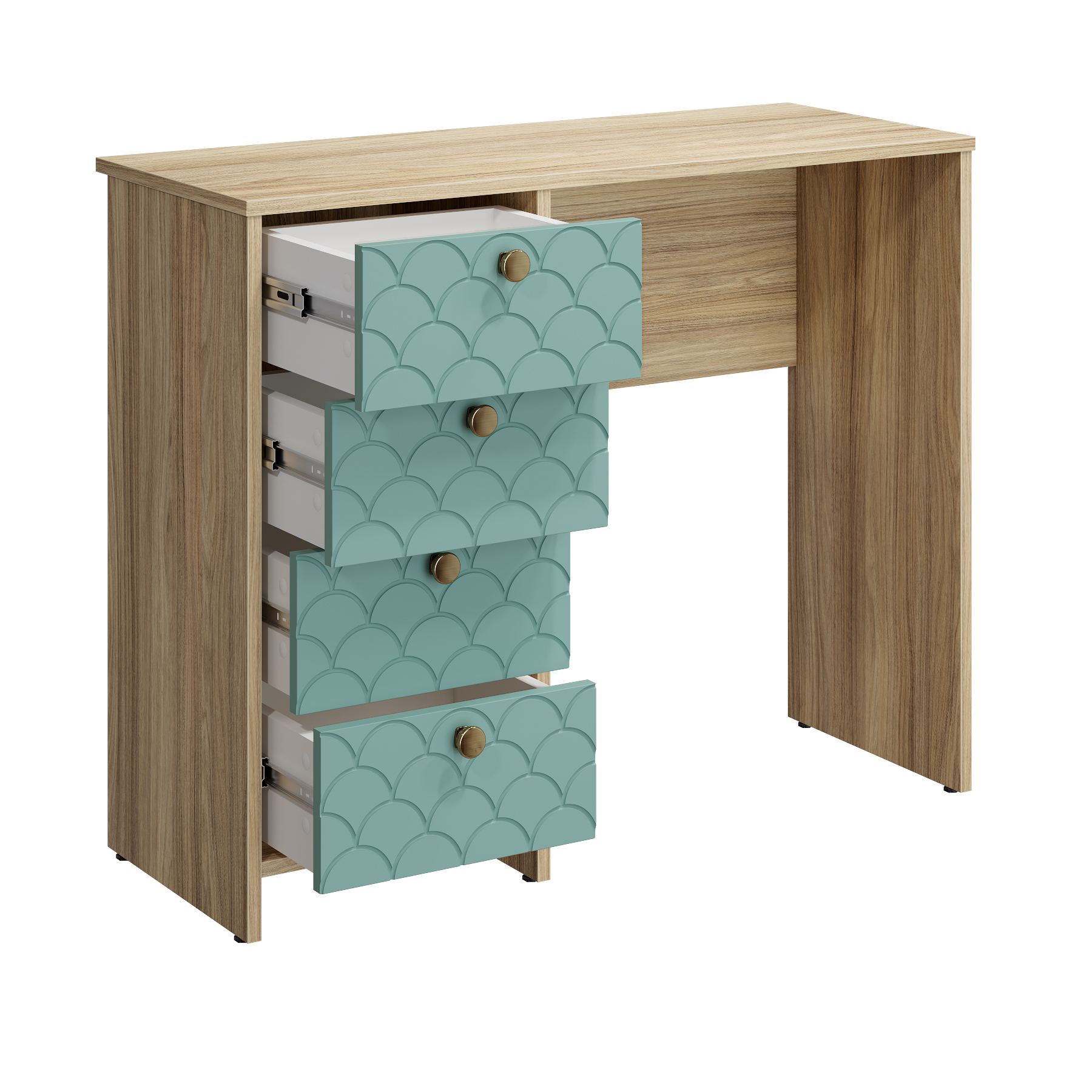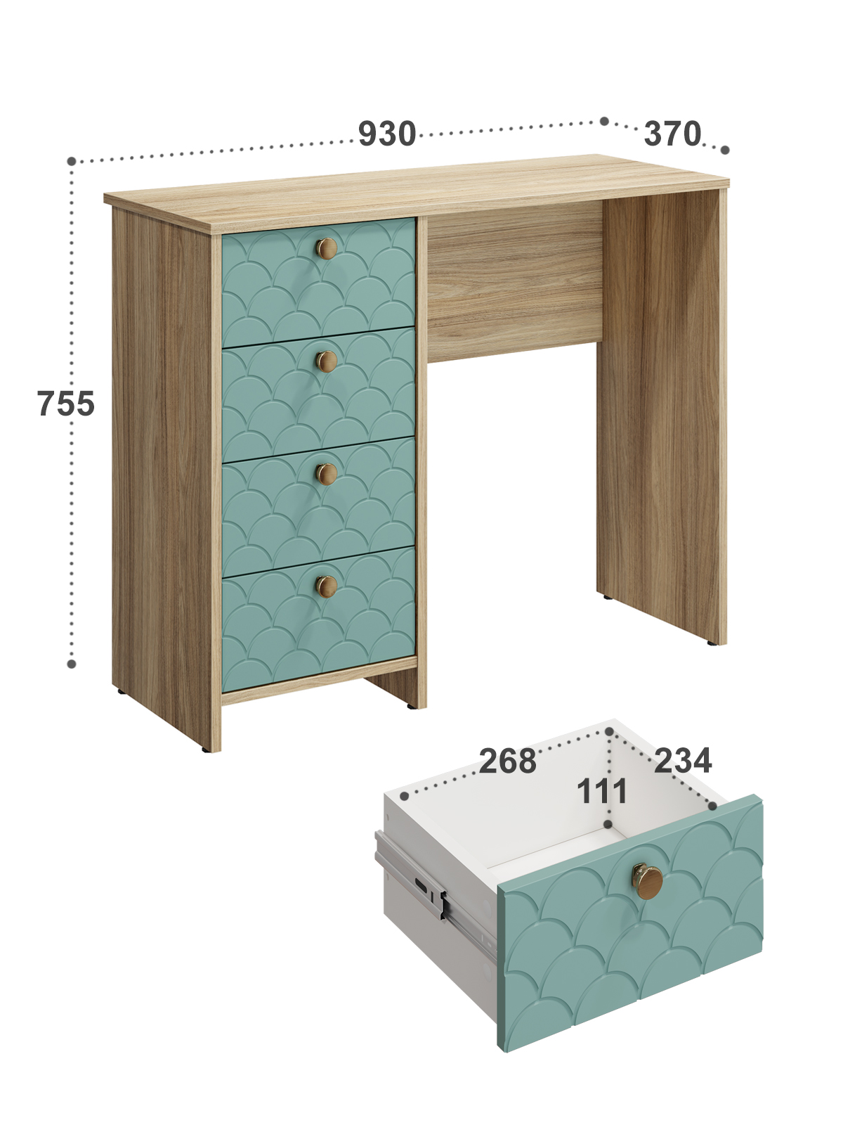 Размеры комплекта (ш/в/г) в мм: 930х760х370 Материал корпуса/фасада: ЛДСП 16мм, МДФ 16мм Стол Велламо ВО-10 прекрасно впишется в интерьер уютной и комфортной комнаты. Изделие поможет создать достаточно удобное место для наведения красоты или рабочей зоны. Широкая столешница позволит разместить под рукой все необходимые предметы. Четыре выдвижных ящика созданы для бережного хранения косметики, аксессуаров и украшений и других предметов. Толщина столешницы ЛДСП 16 мм, дно ящика двп 3 мм. Регулируемые опоры. Стол может быть собран "ЛЕВЫМ" или "ПРАВЫМ". Фурнитура: телескопические бесшумные направляющие полного выдвижения без доводчиков, ручки металл. Доставка и сборка: мебель поставляется в разобранном виде, в надежной упаковке, с подробной инструкцией по сборке. Сборка осуществляется самостоятельно или с привлечением специалистов.