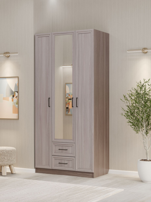 Шкаф распашной ШК‑3/6 — функциональное решение для организации хранения в спальне, прихожей или гостиной. Трёхдверный шкаф со штангой, полкой и выдвижными ящиками позволяет рационально использовать пространство. Сочетание материалов (МДФ для фасадов и ЛДСП для корпуса) обеспечивает прочность, долговечность и эстетичный внешний вид изделия. Лаконичный дизайн шкафа гармонично вписывается в современные интерьеры.