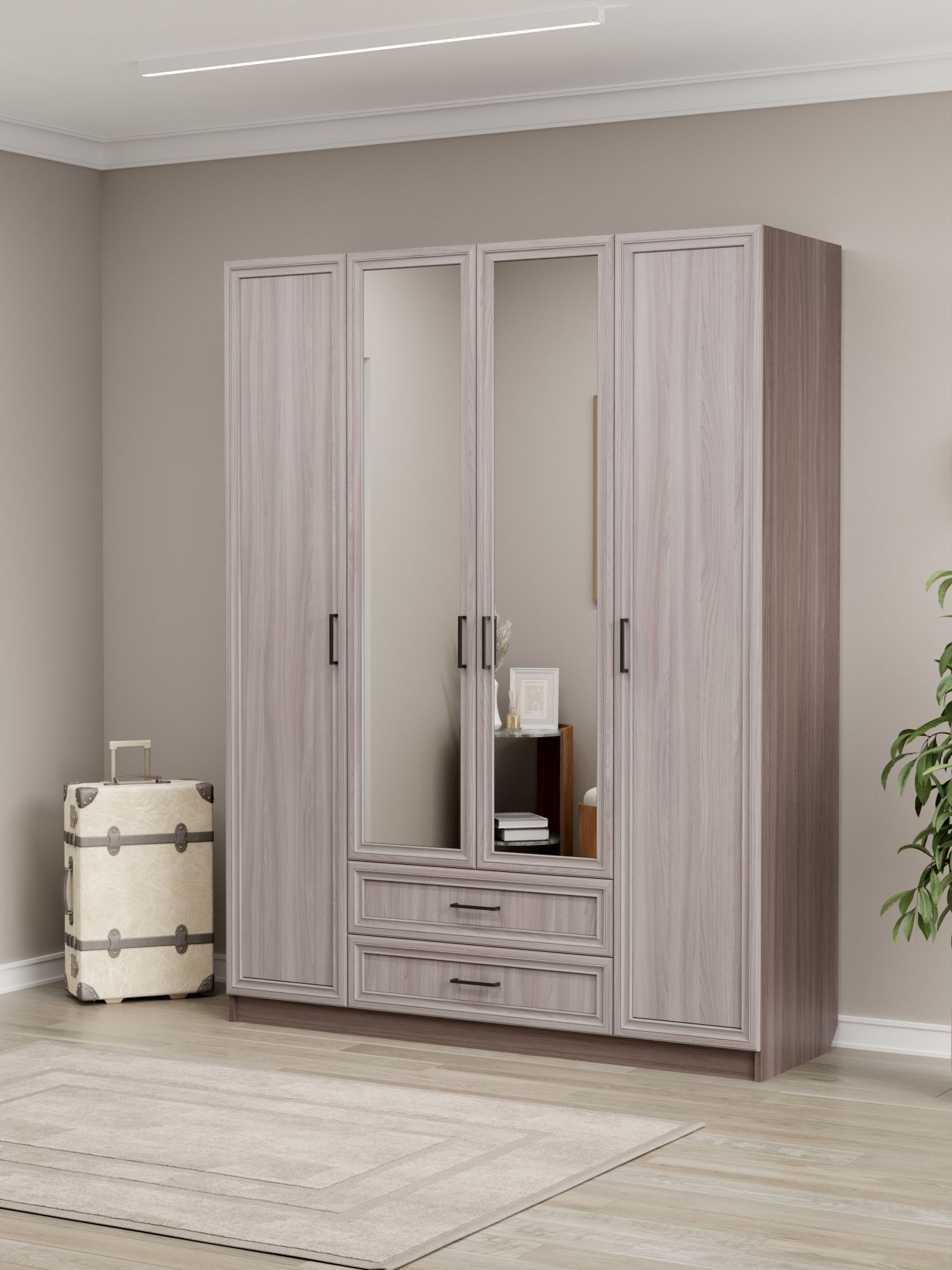 Шкаф распашной InHouse ШК‑4/2 — вместительное решение для организации хранения в спальне, прихожей или гардеробной. Модель сочетает четырёхстворчатое отделение для одежды с многочисленными полками, обеспечивая эффективное использование пространства. Сочетание МДФ на фасадах и ЛДСП в корпусе придаёт изделию эстетичность и надёжность, а лаконичный дизайн органично вписывается в современные интерьеры.