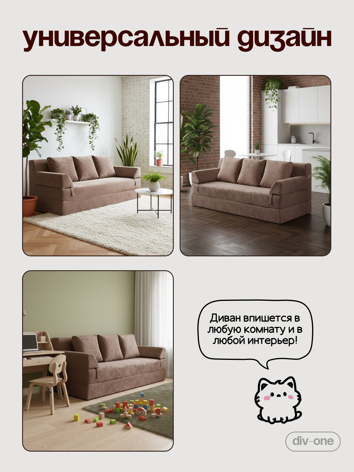 Экологически чистые материалы и продуманный дизайн позволят создать уютную атмосферу в комнате. Удобные съемные подушки обеспечивают дополнительный комфорт во время отдыха, а легкость конструкции позволяет без труда перемещать диван из комнаты в комнату. Книжка подходит не только для квартиры, но и для дачи. Стильный вид впишется в любой интерьер — от лофта до модерна.