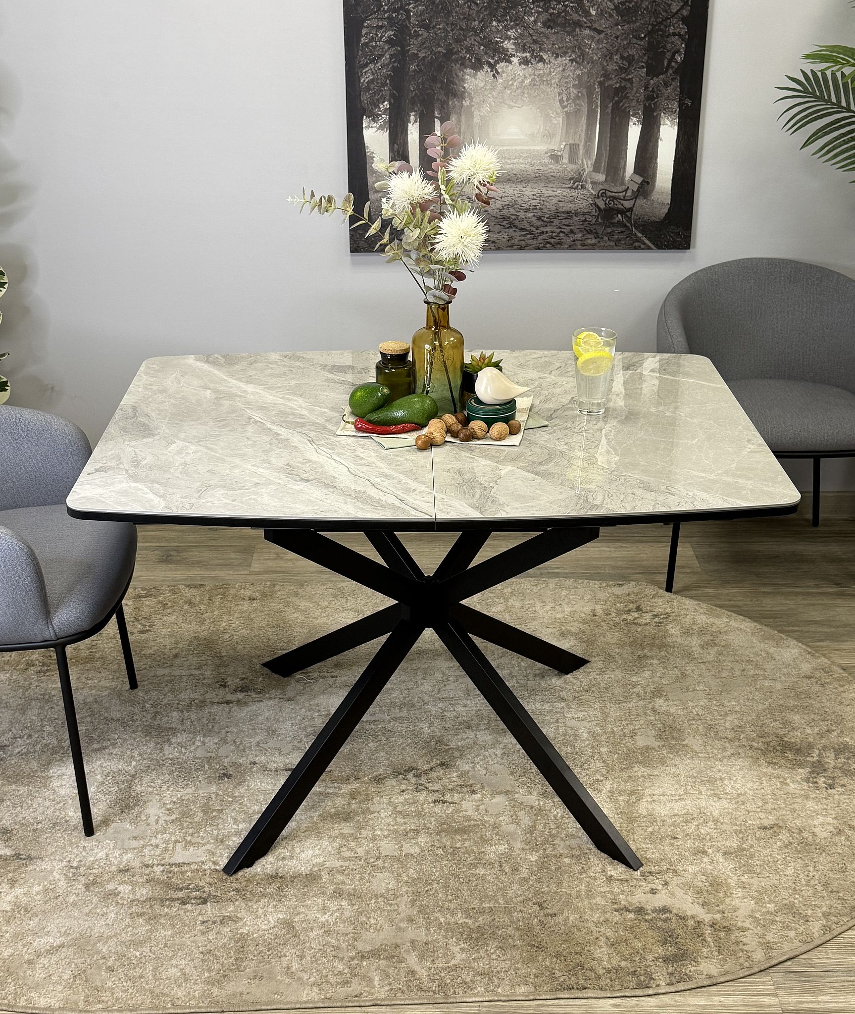 Кухонный раздвижной прямоугольный керамический обеденный стол для кухни и дома Kenner BR1200 в черном цвете с керамической столешницей ITALIAN MIDDLE GRAY. Современный раскладной стол удобен для ежедневного использования и легко раскладывается. Центральная опора обеспечивает устойчивость и комфортную посадку, а прочная керамика гарантирует долговечность и аккуратный премиальный внешний вид.