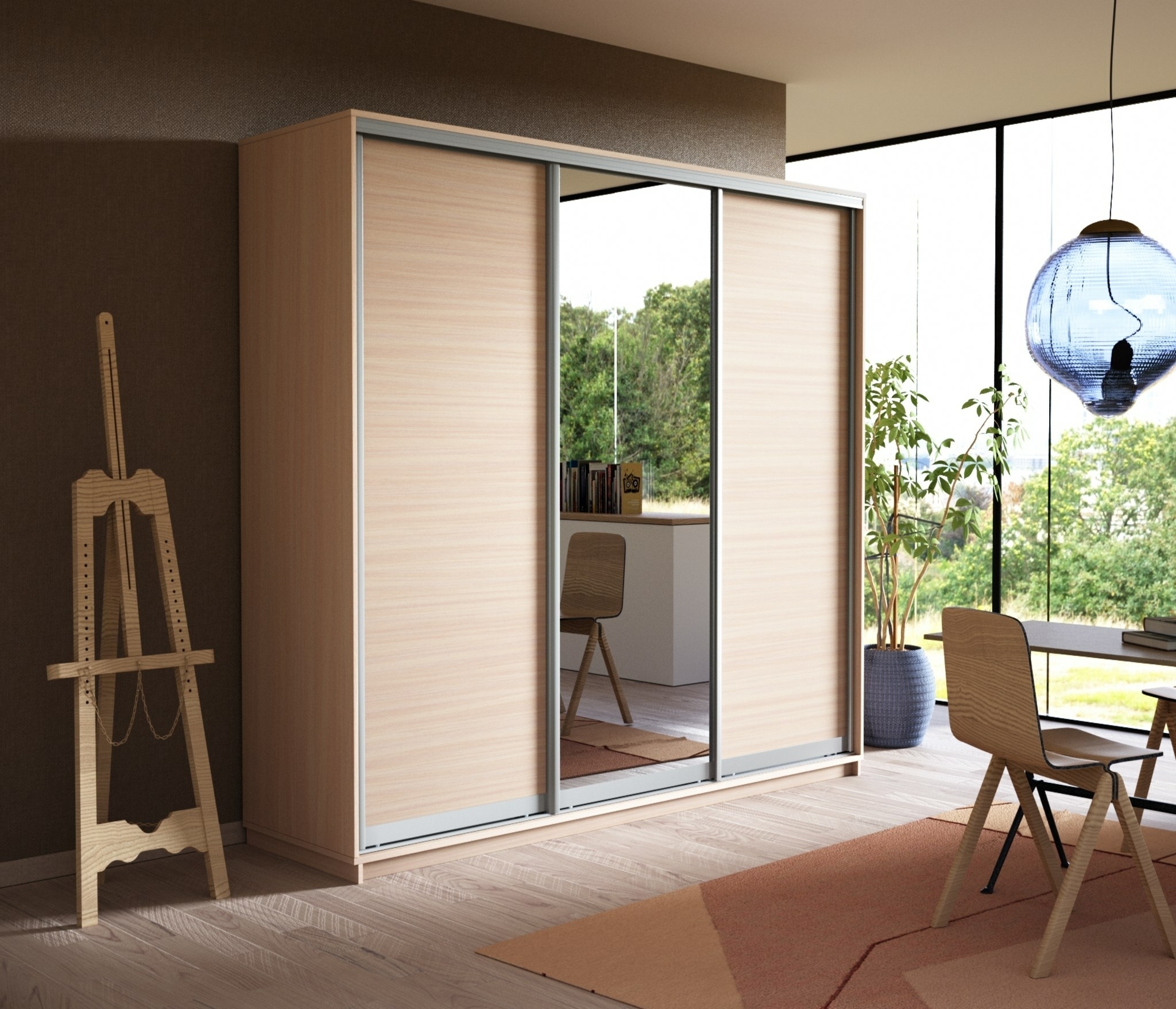 Шкаф-купе Экспресс Медиум (1 зеркало) трио 2200 x 2400 x 600 (Дуб молочный)