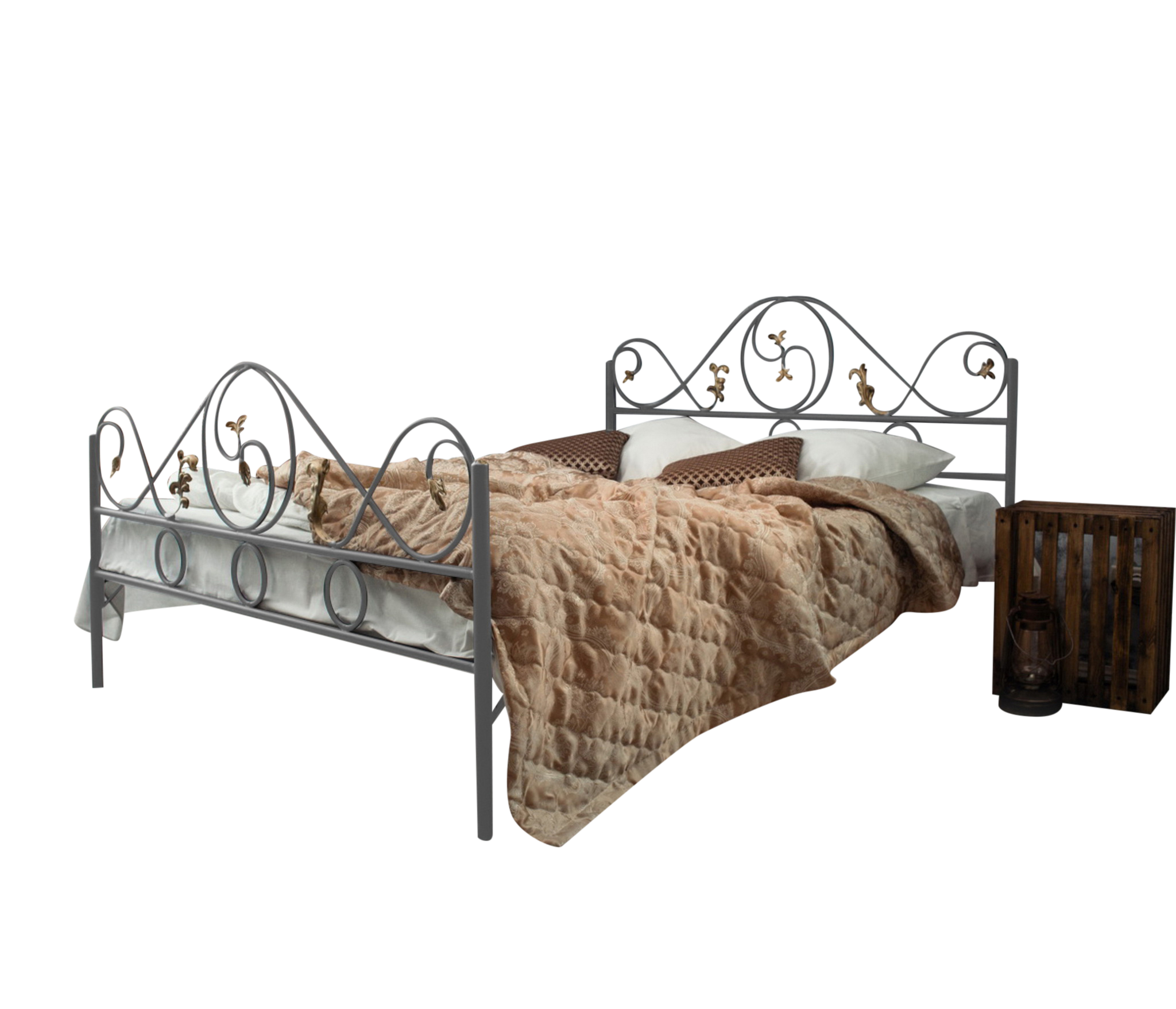 Кованая кровать Венеция 1.4 с двумя спинками (Серый)