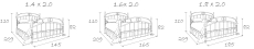 Размеры спального места (ДхШ) 2000х1400. Высота изножья 820 мм.