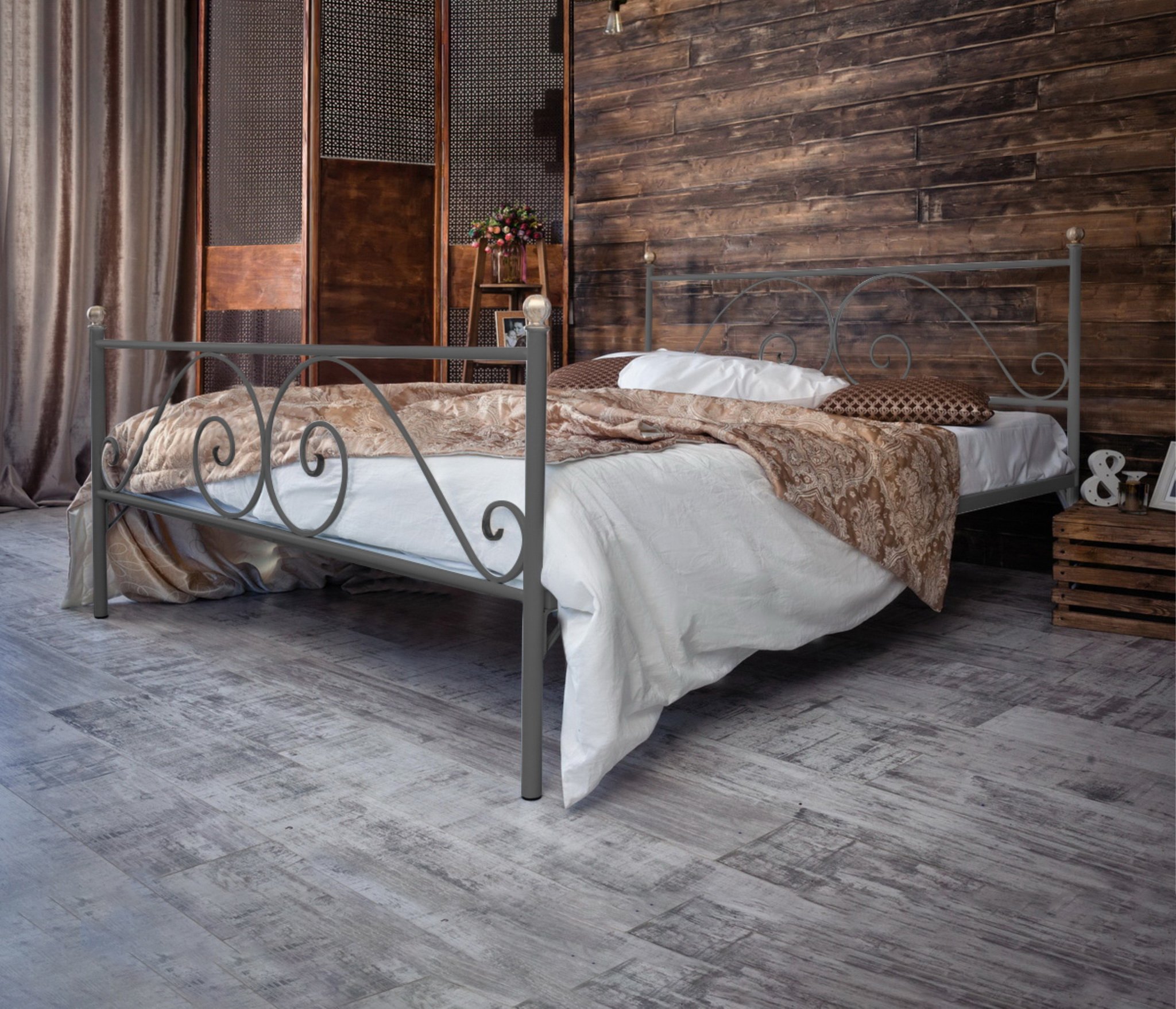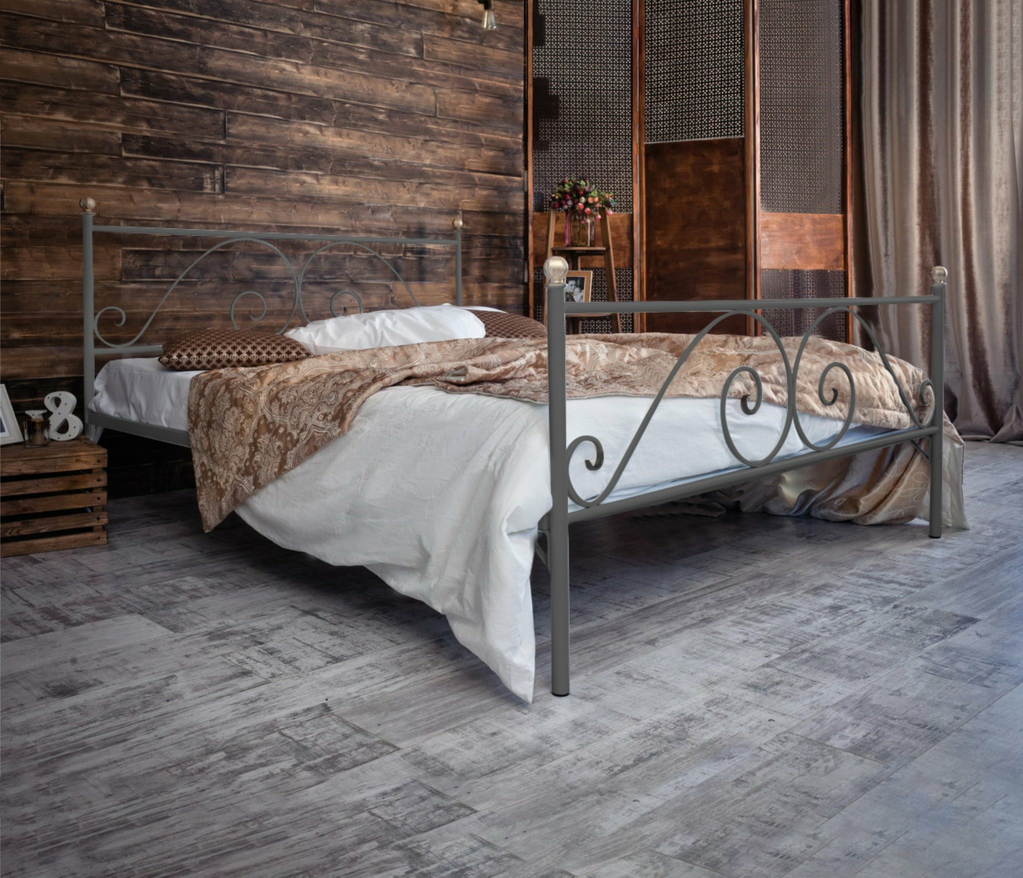 Кованая кровать Анталия 1.4 с двумя спинками (Серый)