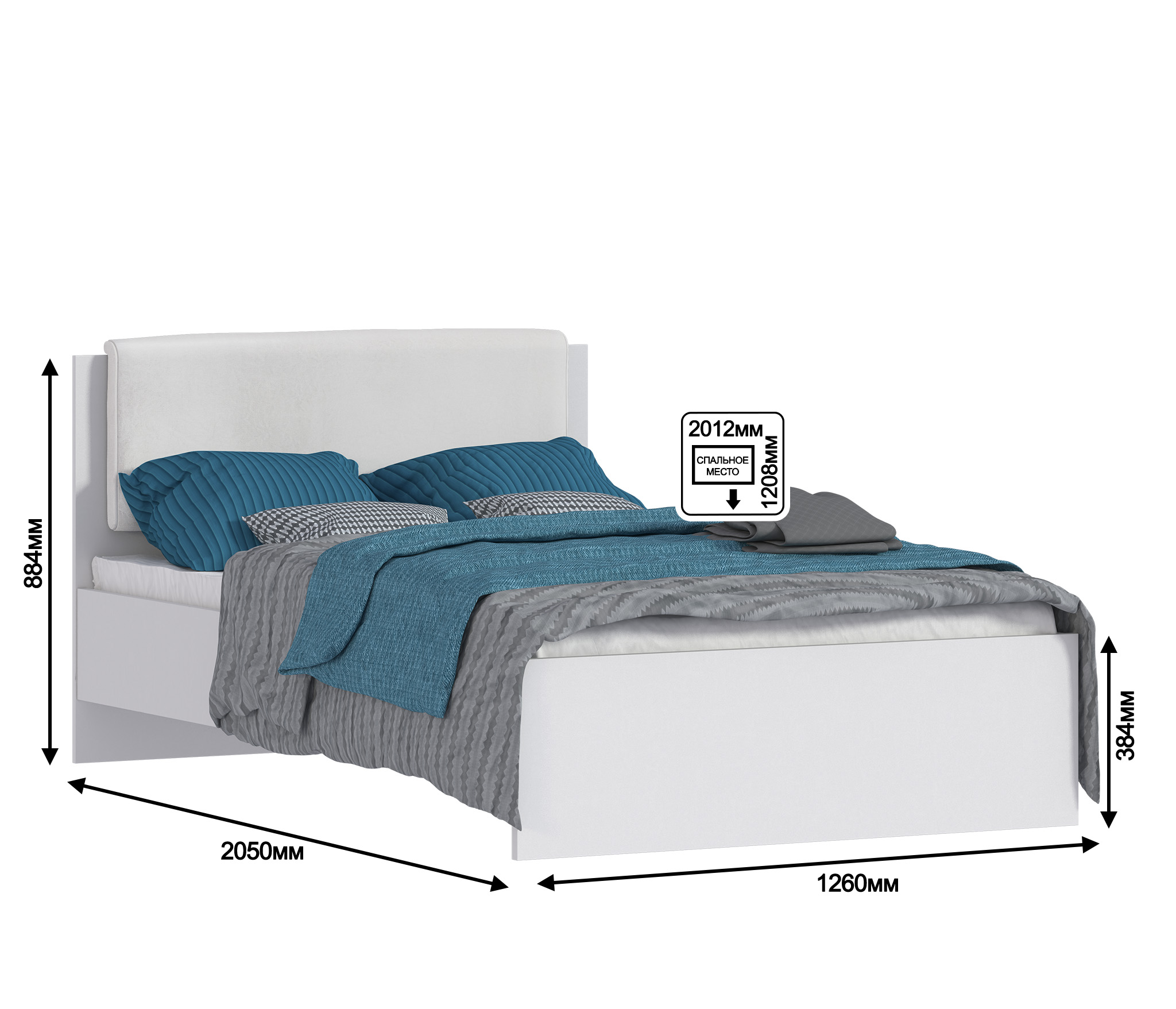 Размер спального места 1200 x 2000 мм.