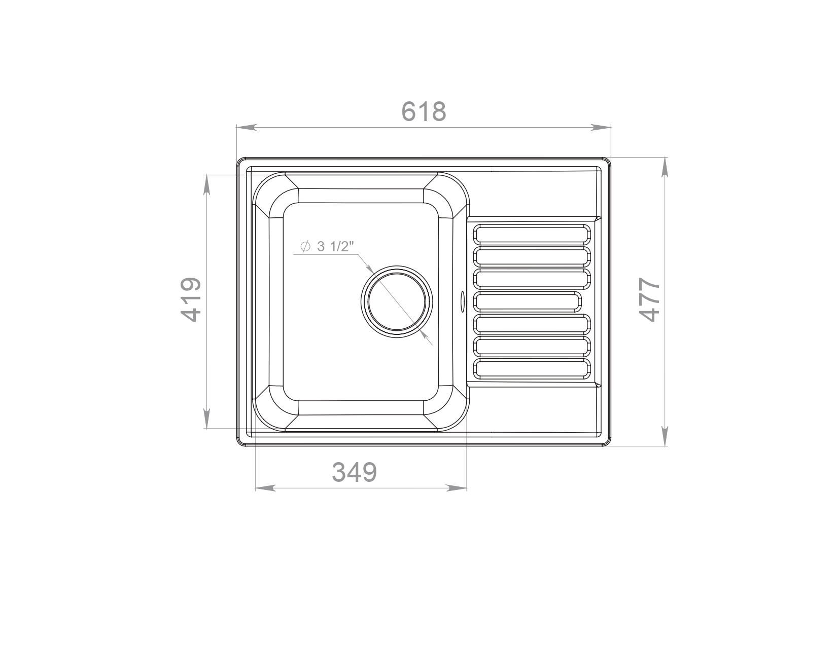 Общий размер мойки: 620х480