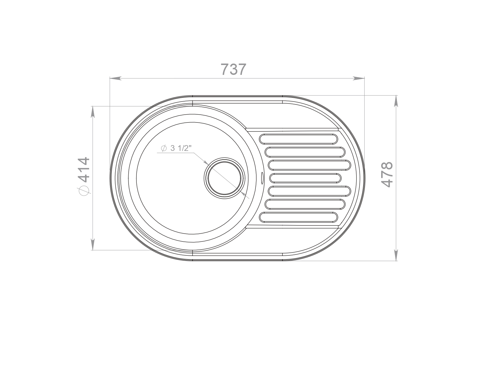 Общий размер мойки: 740х480