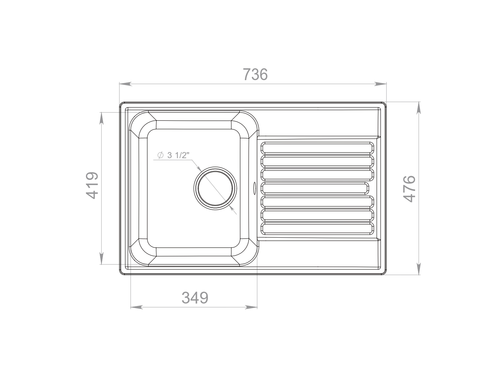Общий размер мойки: 740х480