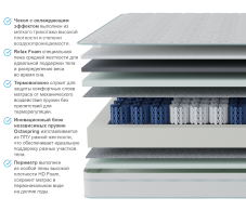 Все пены в составе матраса имеют сертификат CertiPur. CertiPur – независимая сертификация по европейскому стандарту, разработанному специально для пен, которые используются в изготовлении матрасов и мягкой мебели. Матрас прошел испытание в лаборатории качества, что гарантирует высочайшее качество, долговечность матраса и высокий уровень комфорта. Трикотажный дышащий чехол поддерживает исключительную вентиляцию матраса, позволяя вашему телу дышать всю ночь, и вы ощущаете себя как на облаке.