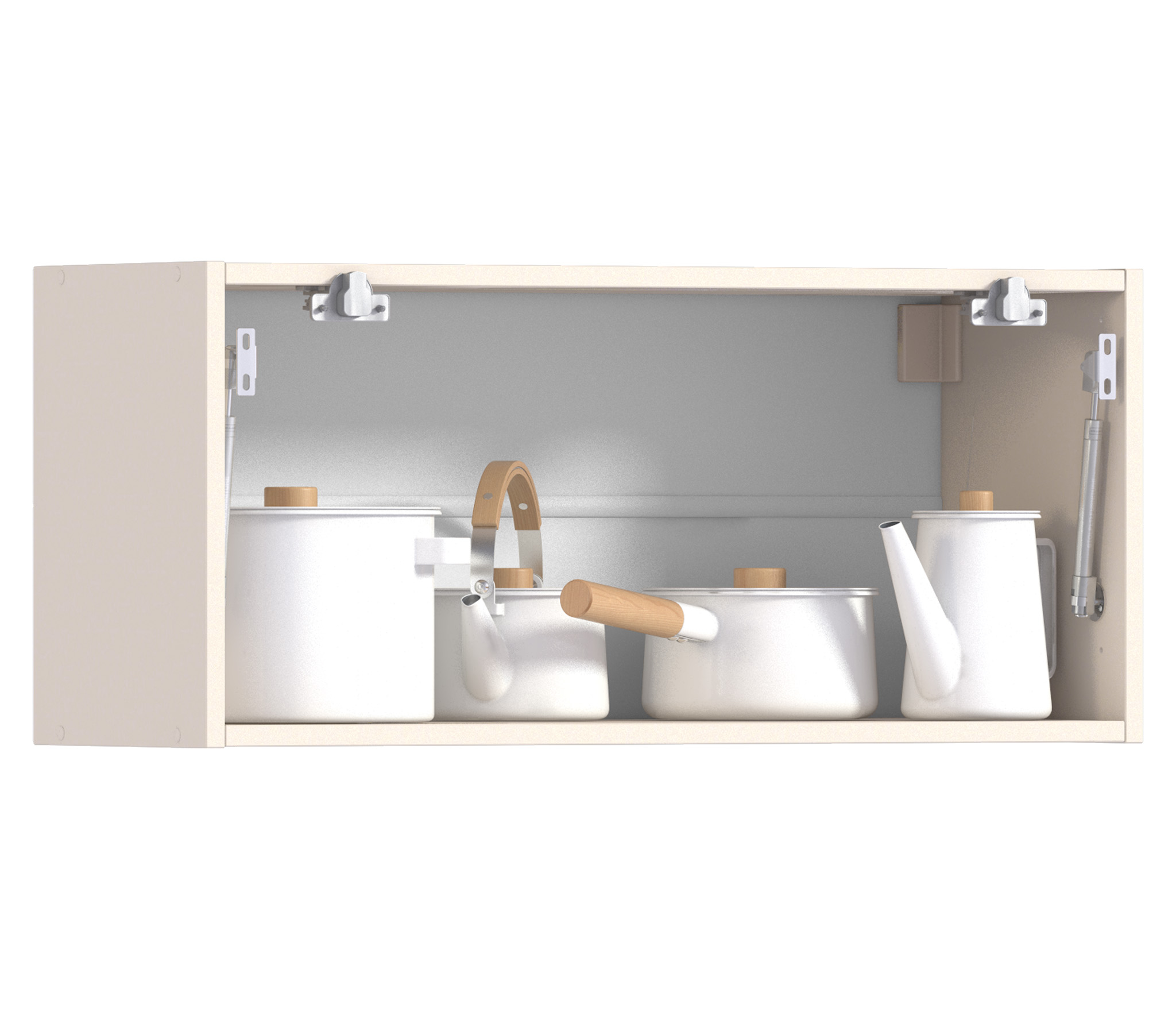 Качественная полка для кухни. Она позволяет максимально эффективно использовать пространство над вытяжной трубой. Конструкция полки позволяет скрыть верхнюю часть вытяжки. В комплект входят надежные механизмы. Дверцы заказываются дополнительно.