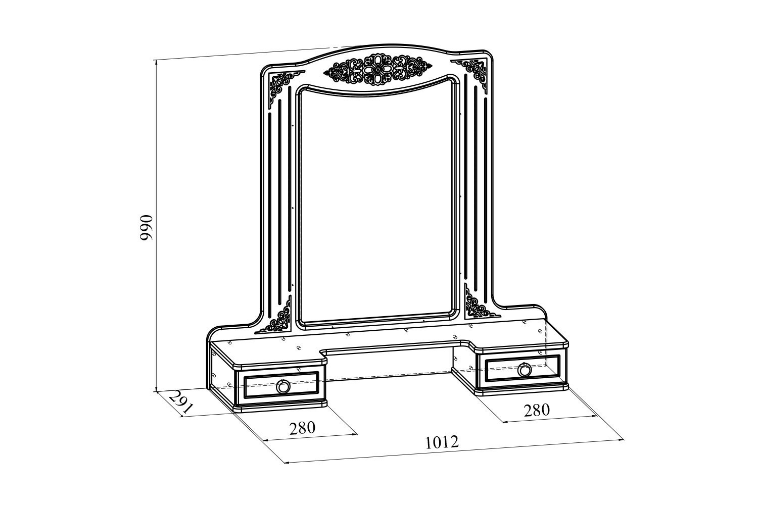 Модуль АС-38 — изящная полка с двумя выдвижными ящиками и зеркалом.