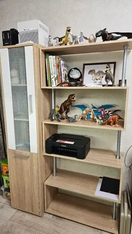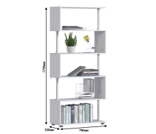 Габаритные размеры – ширина 79 см, высота 177 см и глубина 33 см. Конструктивно стеллаж представляет собой пять открытых полок. Благодаря белому цвету и легкой конструкции, стеллаж не создает впечатление тяжести или громоздкости.