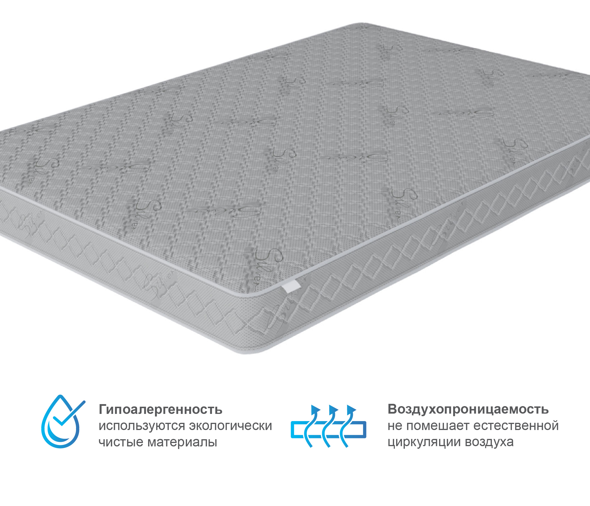 Односпальный матрас дополнен чехлом, изготовленным из ткани синтетический жаккард, стеганный на синтепоне 200 г/м2. Это современное и очень прочное полотно.