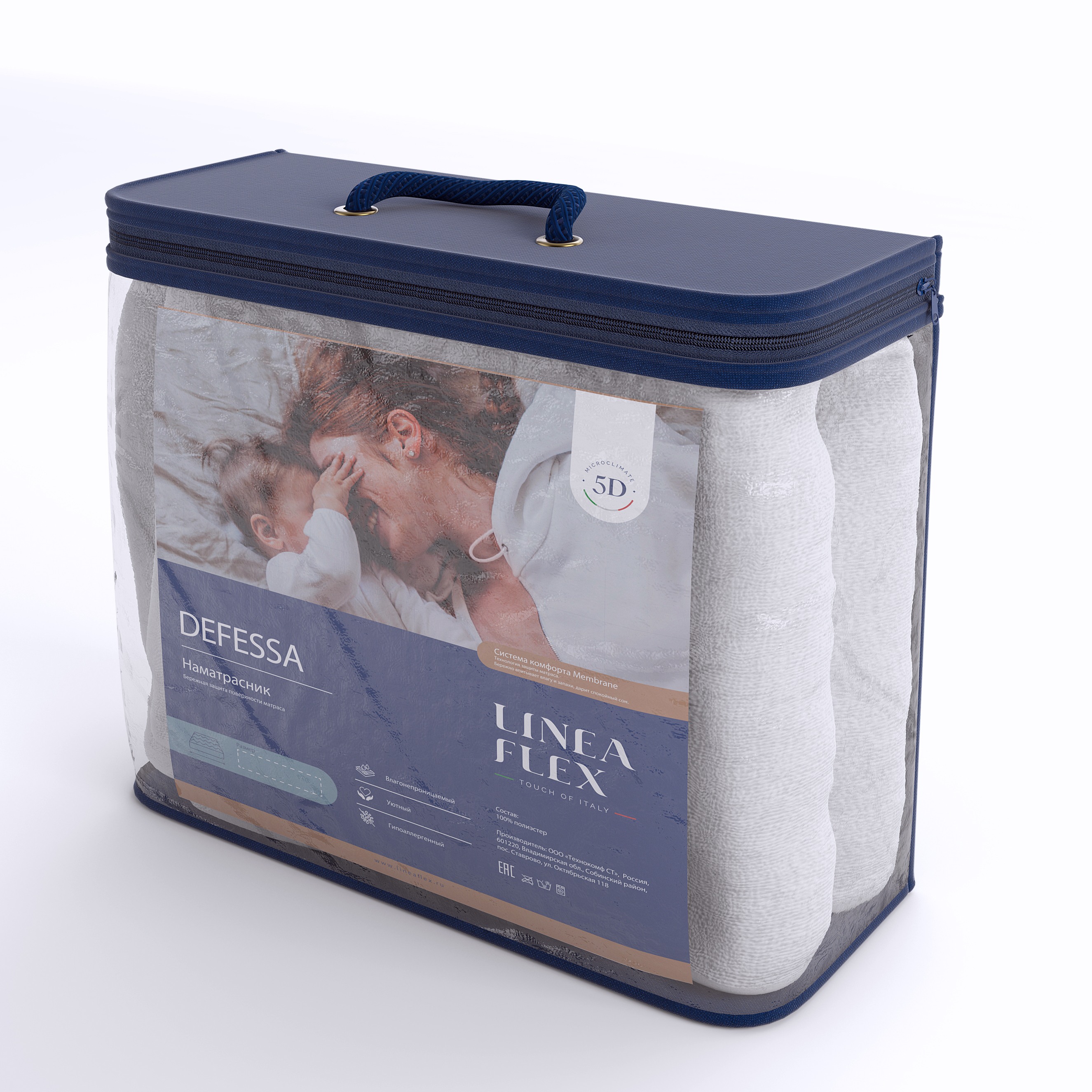 Наматрасник Lineaflex Дефесса является водонепроницаемым, что определяет его уникальные свойства и обеспечивает максимальную защиту матраса от внезапного воздействия большого количества влаги. Наматрасник выполнен в виде водонепроницаемой простыни - чехла. Данный материал рассчитан справляться с внезапным попаданием на поверхность значительного объёма влаги. В случае, если жидкость убирается своевременно, наличие такого наматрасника вполне достаточно, чтобы полностью защитить матрас и обеспечить ему длительный срок эксплуатации.