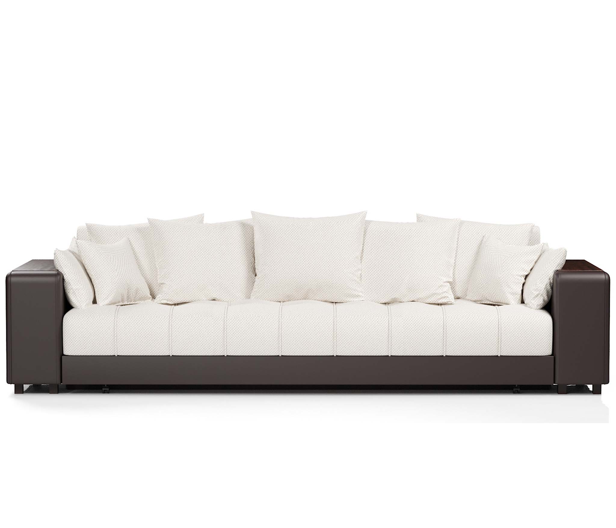 Прямой диван Дубай это отличный выбор для тех, кто планирует создать уют в своей квартире. Модель имеет выдержанный дизайн без элементов, которые перегружают её. С каждой стороны в подлокотниках установлены полки, куда вы сможете складывать различные мелочи, пульт итд.
