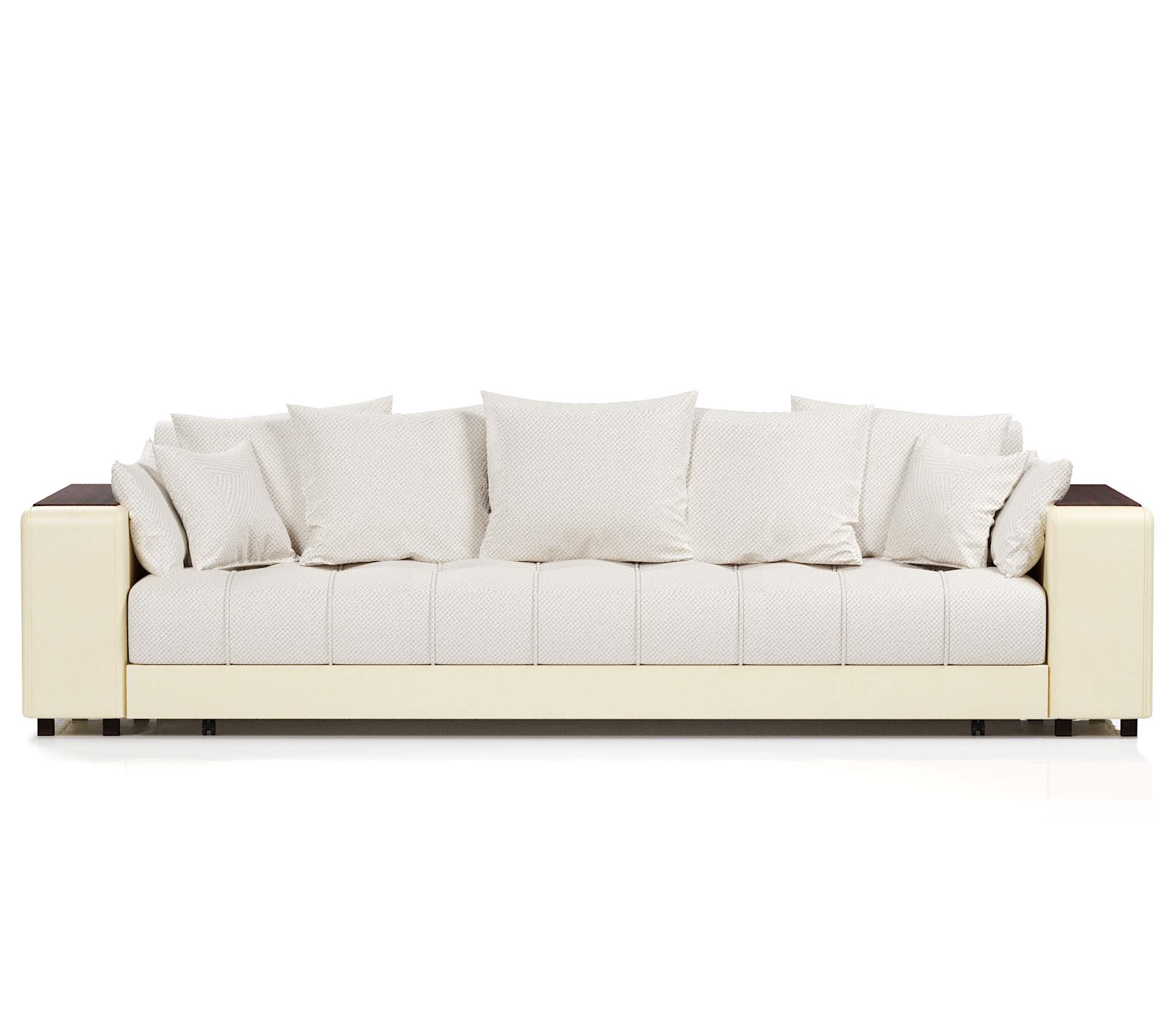 Прямой диван Дубай это отличный выбор для тех, кто планирует создать уют в своей квартире. Модель имеет выдержанный дизайн без элементов, которые перегружают её. С каждой стороны в подлокотниках установлены полки, куда вы сможете складывать различные мелочи, пульт итд.