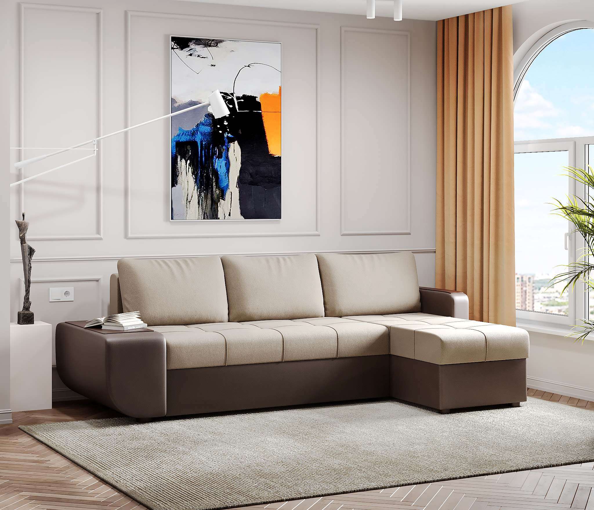 Угловой диван Атланта это идеальный способ грамотно организовать пространство в вашей квартире. Диван может быть и левосторонним, и правосторонним, поэтому вы легко сможете его разместить в любой комнате.