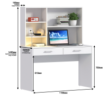 Стол Терра СБ-3213, благодаря продуманной конструкции и стильному классическому дизайну, может быть полноценным рабочим местом с возможностью размещения ноутбука и периферийной аппаратуры в детской комнате или комнате студента. Габаритные размеры – ширина 115 см, высота 143 см и глубина 50 см. Под рабочей поверхностью расположены два выдвижных ящика. Над столешницей находятся открытые вместительные полки, где можно хранить бумаги, документы, небольшой принтер и другие полезные вещи. Стол выполнен из экологичного и современного ЛДСП. Оформление отделки выполнено в белом цвете. Стильный дизайн, прочные выдвижные механизмы, качественный материал отделки дают возможность стилизовать стол Терра как самостоятельный предмет мебели, так и в составе одноименного гарнитура.