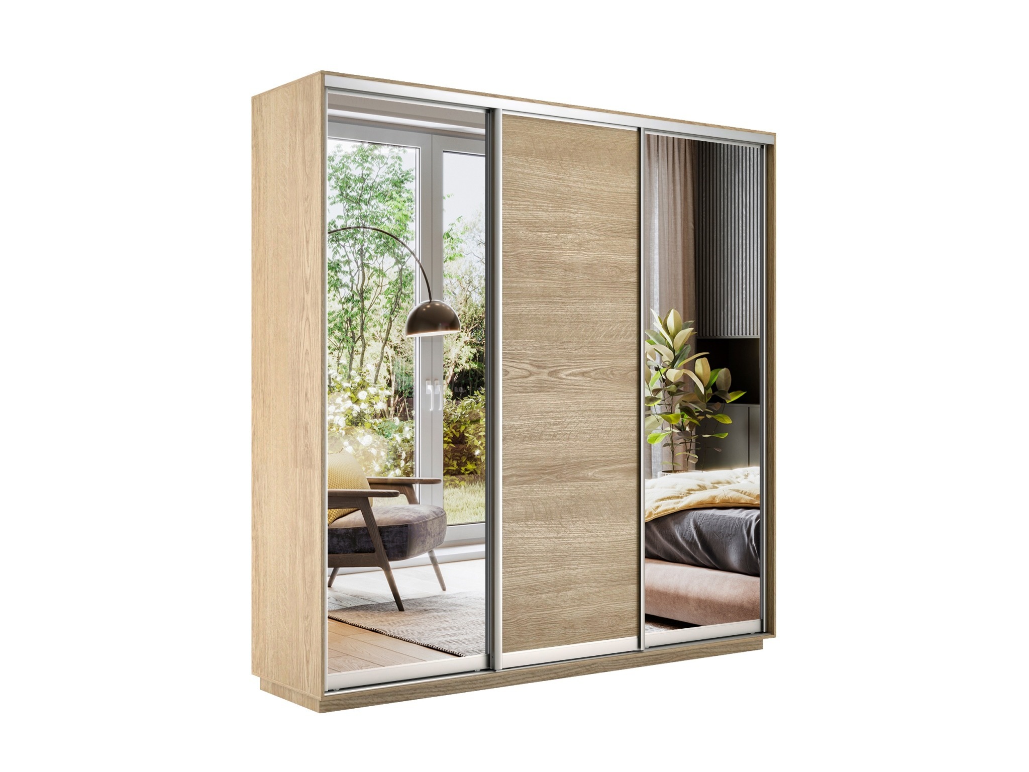 Шкаф-купе Экспресс Медиум (2 зеркала) трио 2200 x 1800 x 450 (Дуб сонома)