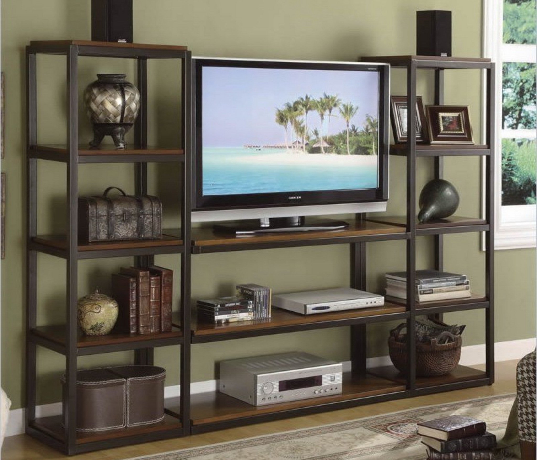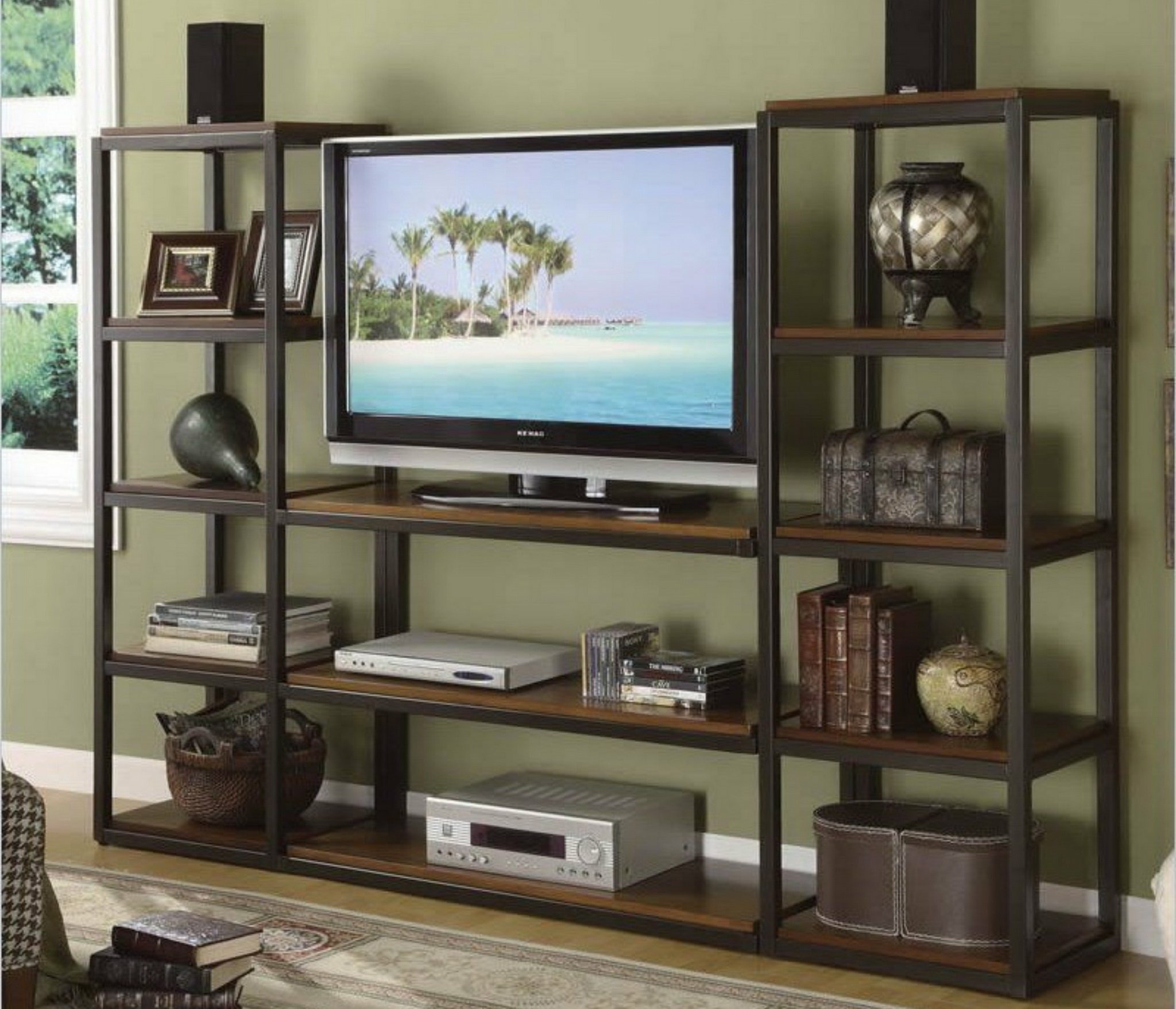 С ТВ тумбой , со стеллажом, глянцевые фасады, С полками