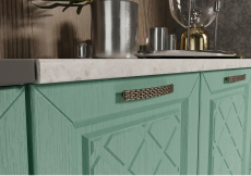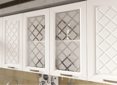 Кухня Агава- изящный гарнитур с фрезеровкой по фасаду и матовыми стёклами.