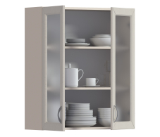 Отзывы о Столплит Сити шкаф навесной со стеклом 2 дв 80х92 см Бежевый песок/Кофе