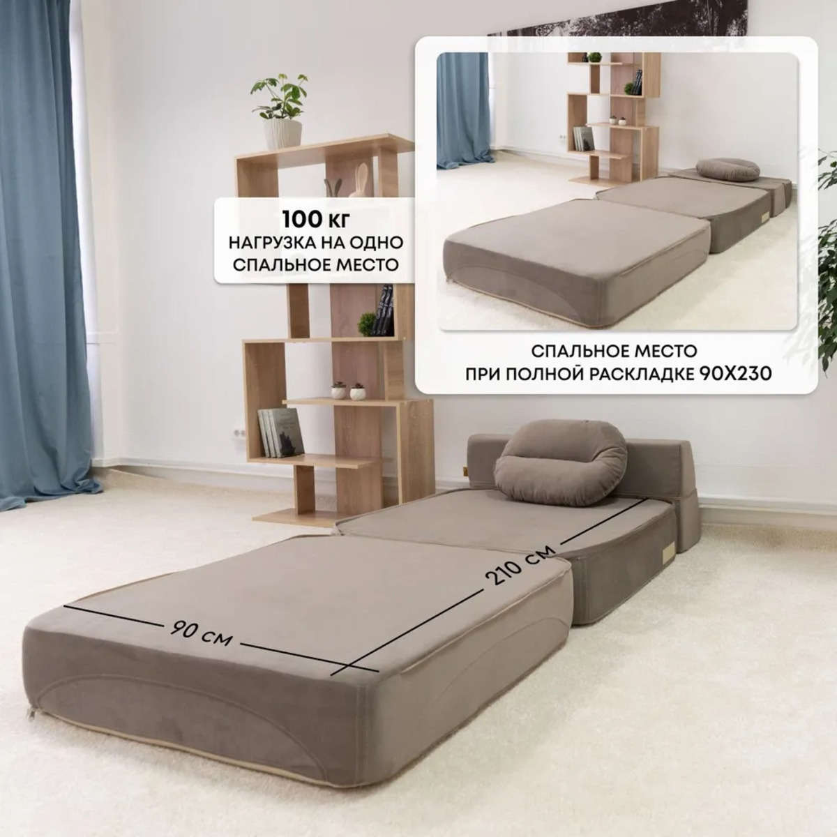 Кресло-кровать изготовлено из износостойкого велюра, который имеет 50 000 циклов по мартиндейлу (по стандарту необходимо 20 000). Наружный чехол матраса легко снимается для чистки. Обивка выполнена из мягкой и приятной на ощупь ткани, которая легко чистится и не выцветает со временем. Это кресло-трансформер легко складывается и раскладывается, что позволяет быстро и удобно изменять его форму в зависимости от ваших потребностей. В сложенном виде оно занимает минимум места, а в разложенном превращается в полноценное спальное место. Это особенно полезно для небольших квартир или домов, где каждый метр пространства имеет значение. Для раскладывания диванчика необходимо сделать несколько простых операций: отодвинуть его от стены, отстегнуть “липучки”-фиксаторы, опустить спинку, расстегнуть “молнии” в средней части основания и разложить.